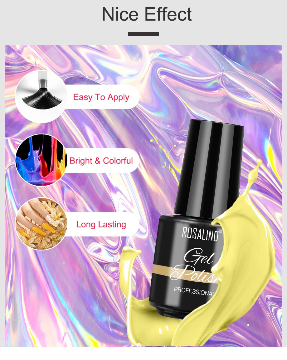 Набор Rosalind набор гель-лаков для ногтей, полуперманентный Гибридный лак для маникюра, базового и топового покрытия, гель для дизайна ногтей лаков