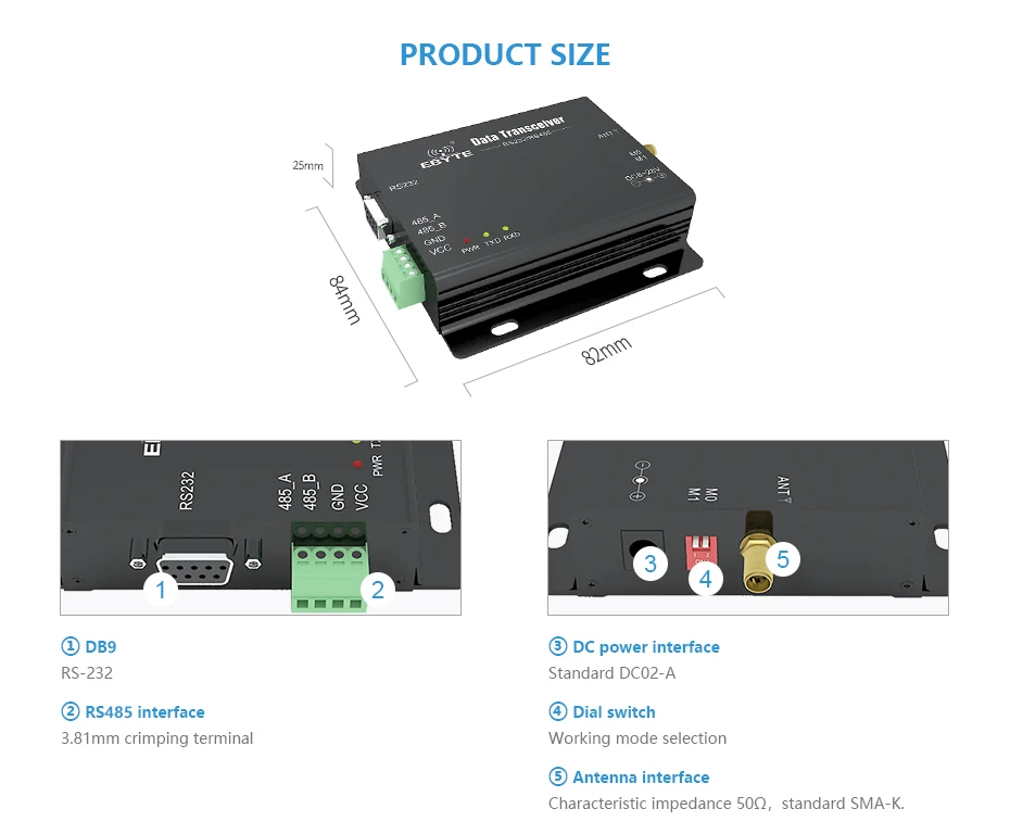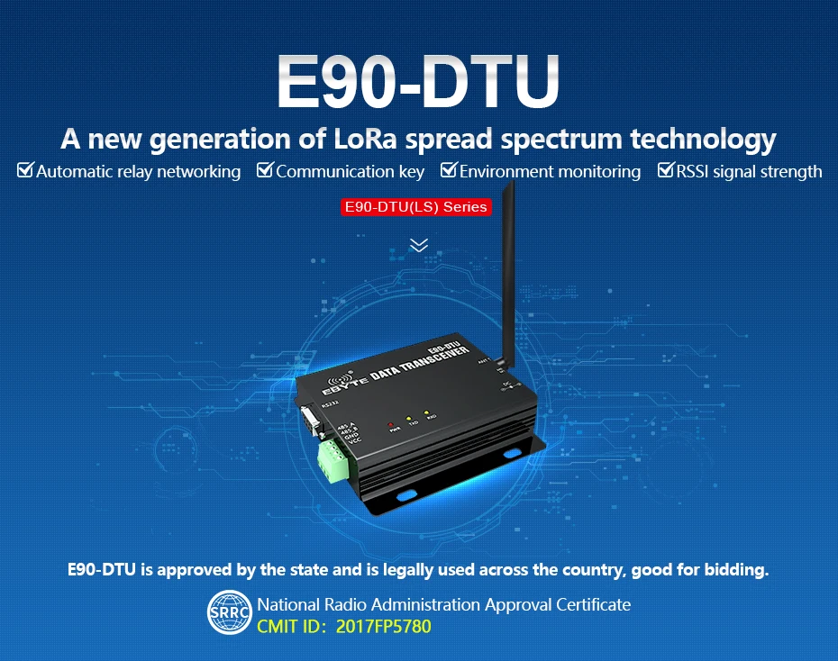 SX1262 Lora 900 МГц 22dBm 5 км Диапазон 0,3 k ~ 62,5 кбит/с E90-DTU(900SL22) RS232 RS485 беспроводной Lora модем