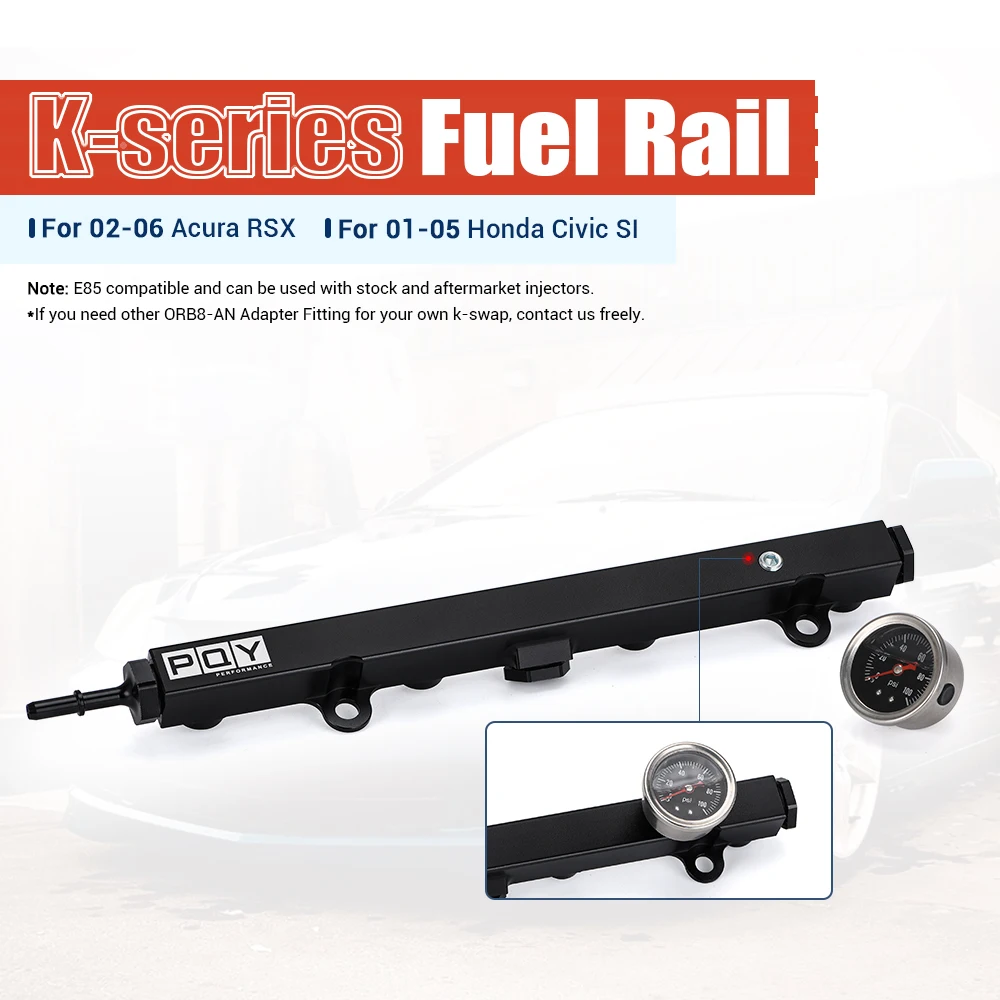 Производительность заготовки Алюминий серии K моторного отсека Топливная рампа для 02-06 Acura RSX ввиде горшка 01-05 Honda Civic K20 K24 заводских линий 1/8th NPT топлива Давление датчик 0-100 фунтов на квадратный дюйм w/нажимная кнопка на топливном фитинге
