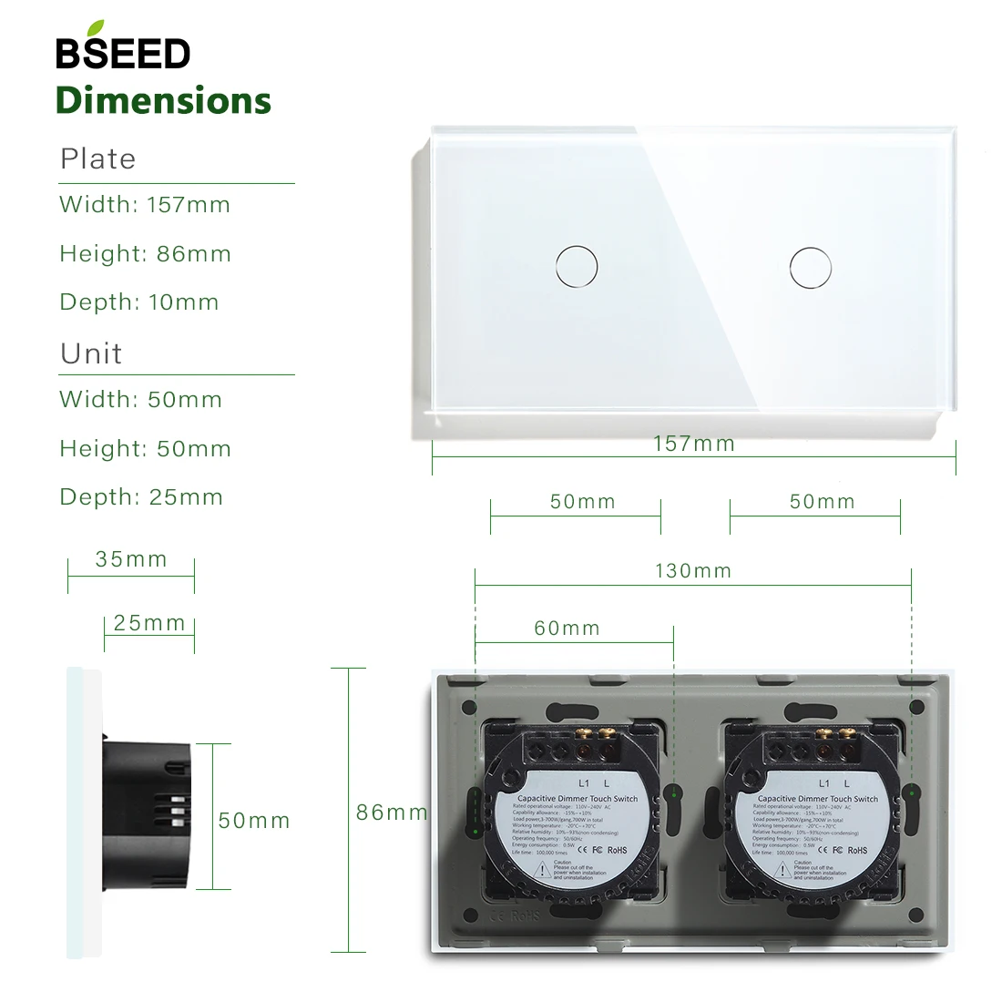 Сенсорный выключатель Bseed 2 Gang, 157 мм, 1 канал, 2 канала свети...