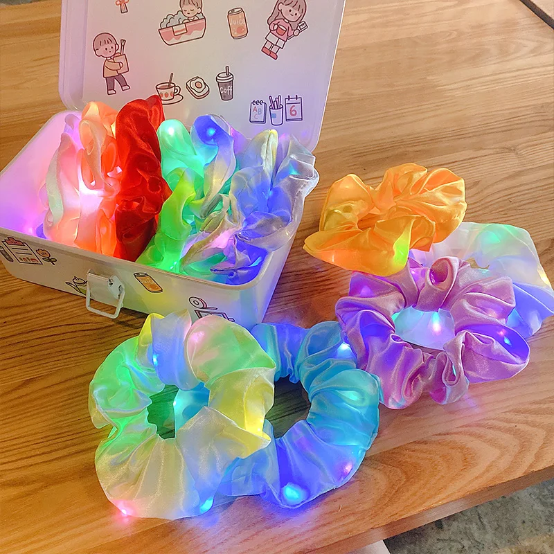 СВЕТОДИОДНЫЙ световой волосы трикотажные резинки для волос для женщ...