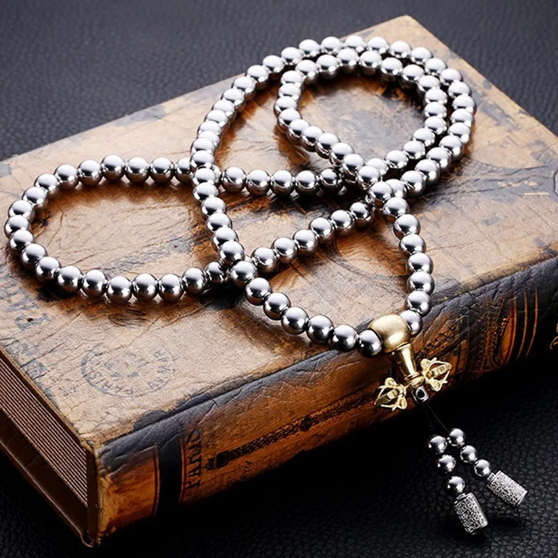Тактическое ожерелье 101 см, браслет из бусин Будды 10 мм, инструменты для повседневного использования на открытом воздухе, ожерелье для самообороны и выживания, цепочка, плетка