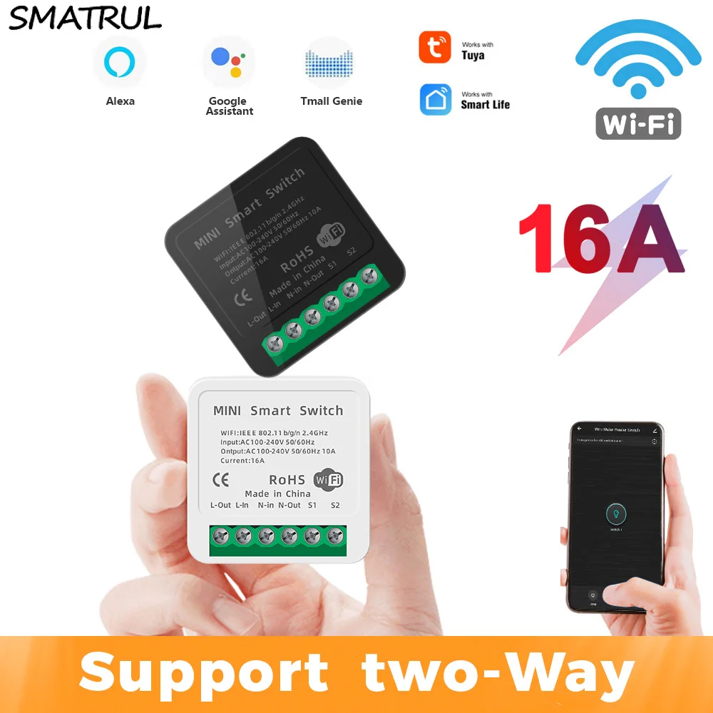 SMATRUL Tuya 16A мини Интеллектуальная Беспроводная (Wi-Fi) "сделай сам" универсальный переключатель для 2 Way Управление автоматизации голосовой модуль реле Таймер Google Home Alexa