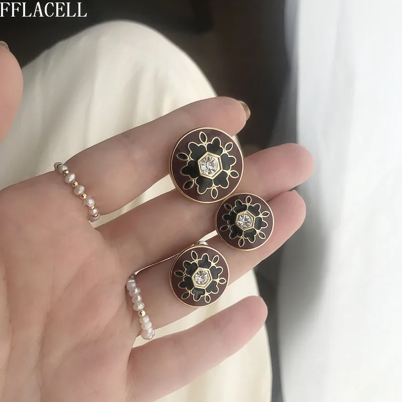 Серьги-гвоздики S925 с эмалью и жемчугом, винтажные круглые украшения для женщин и девушек, ювелирные украшения для путешествий, стразы с блестками, 2020