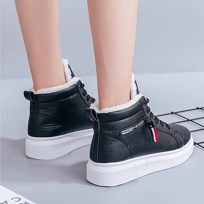 Женские ботинки со шнуровкой, зимние ботинки до щиколотки из искусственной кожи, с плюшевой подкладкой, теплые, 2020