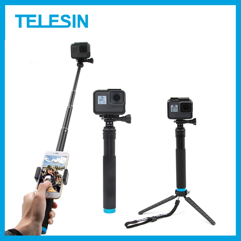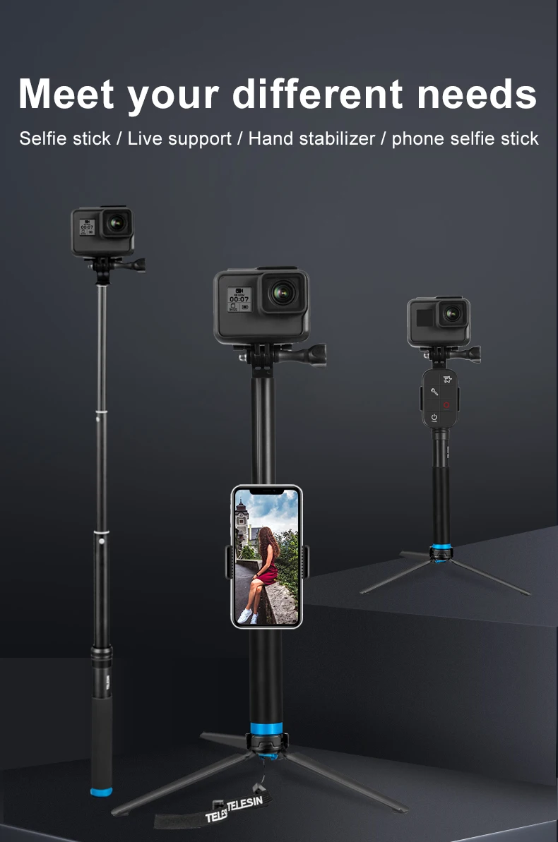 Селфи-палка TELESIN 6 в 1, выдвижная, из алюминиевого сплава, со съемным штативом, держатель для телефона, для камер GoPro SJCAM Xiaomi Yi