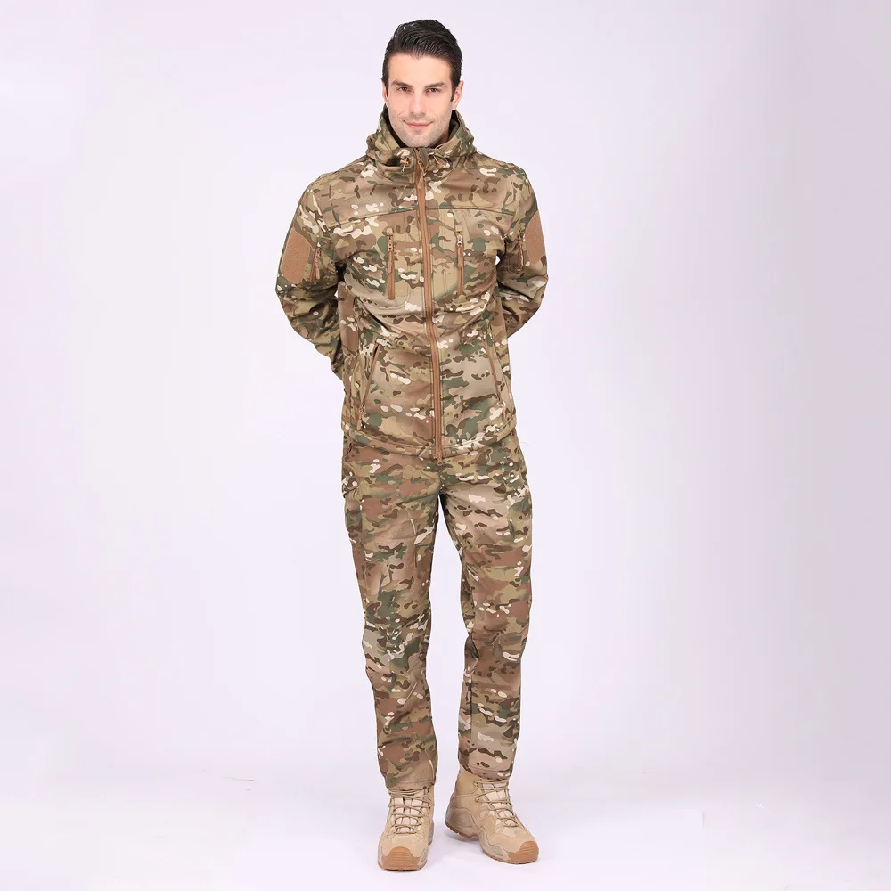 Уличная мягкая оболочка с капюшоном, тактическая зарядная куртка, ветрозащитная Водонепроницаемая плюс Вельветовая Теплая мужская флисовая куртка для пешего туризма