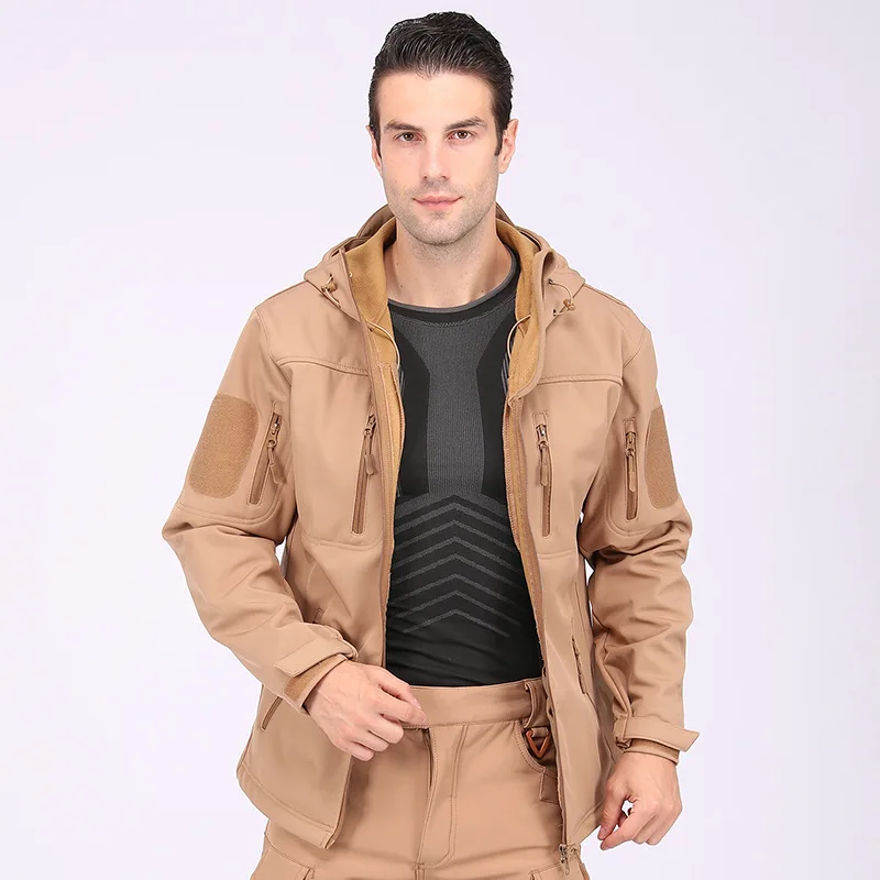 Уличная куртка из мягкой кожи акулы с капюшоном, тактические куртки с защитой от ветра и влаги, плюс бархат, теплое мужское флисовое Походное пальто