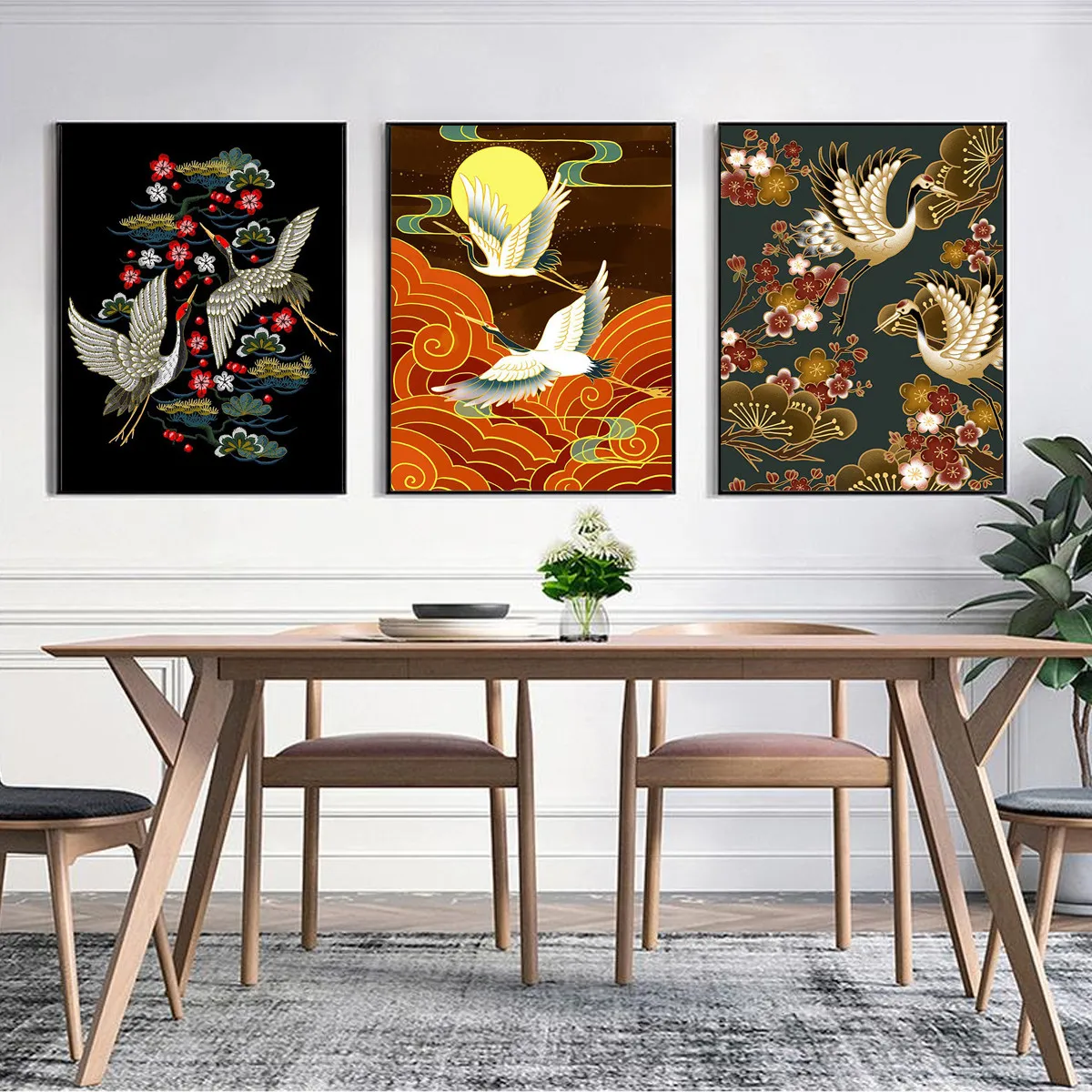 Постер в китайском стиле с Журавлями, летящими птицами, животными, цветами, Картина на холсте, настенное искусство, украшение для гостиной и дома