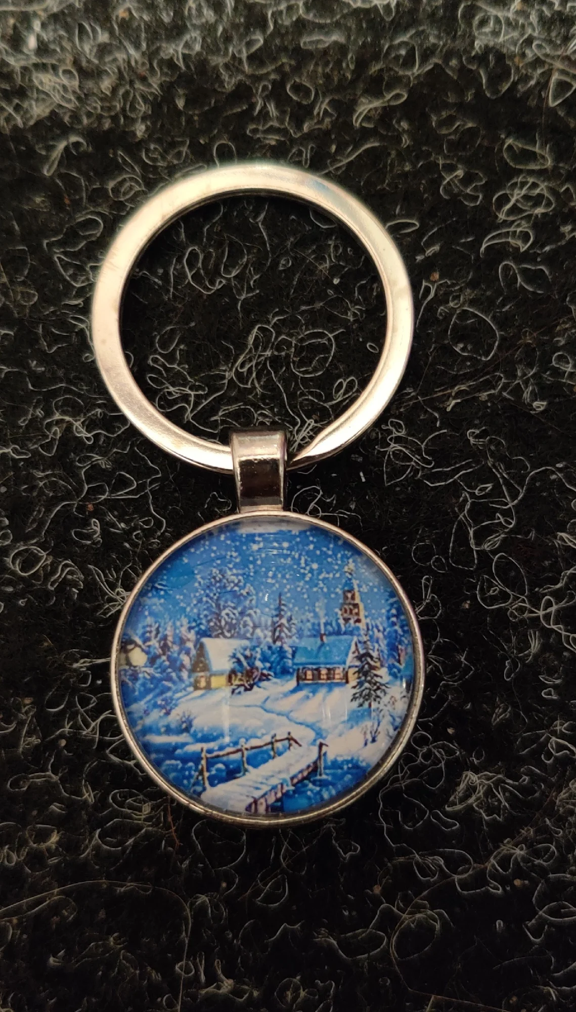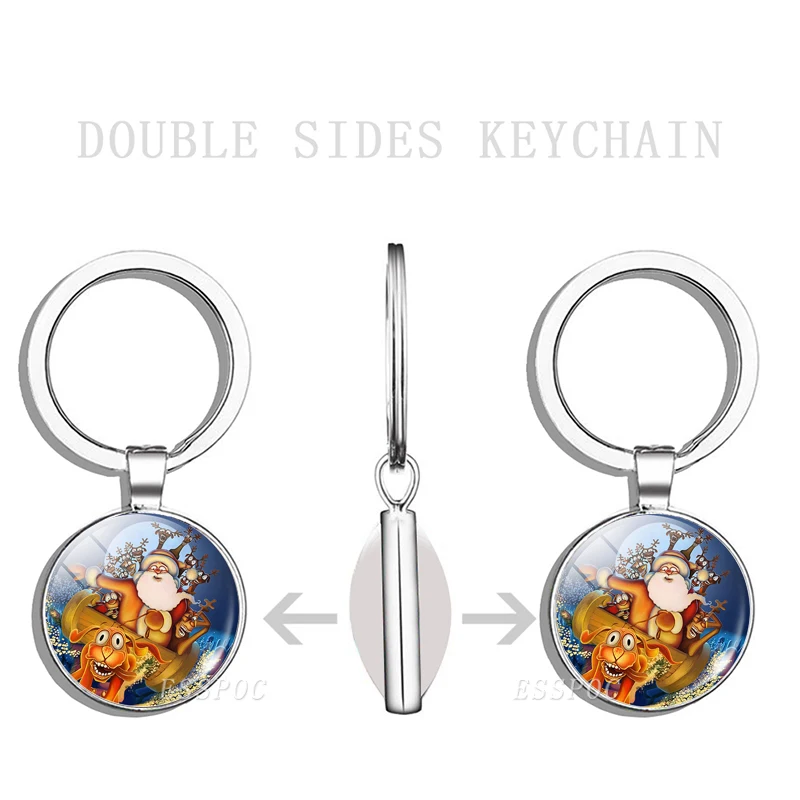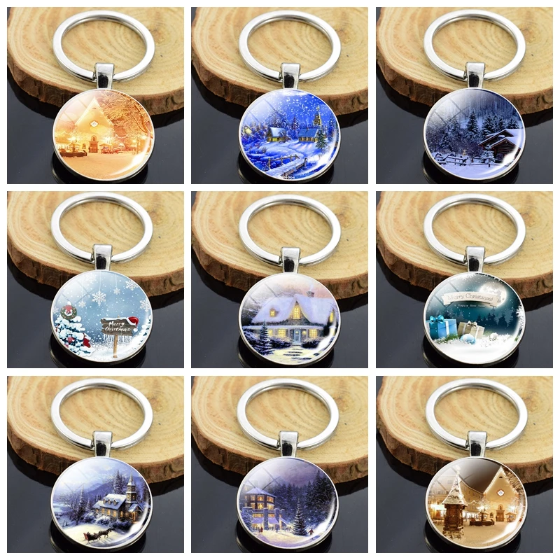 Двусторонний брелок для ключей с изображением Деда Мороза с изображением рождественского оленя, снега дом брелок в виде рождественской елки цепочка, стекло, кабошон