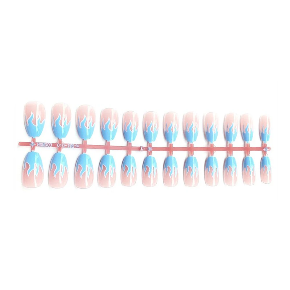 Накладные ногти с пламенем, удлиненные, синиерозовые, 24 шт.