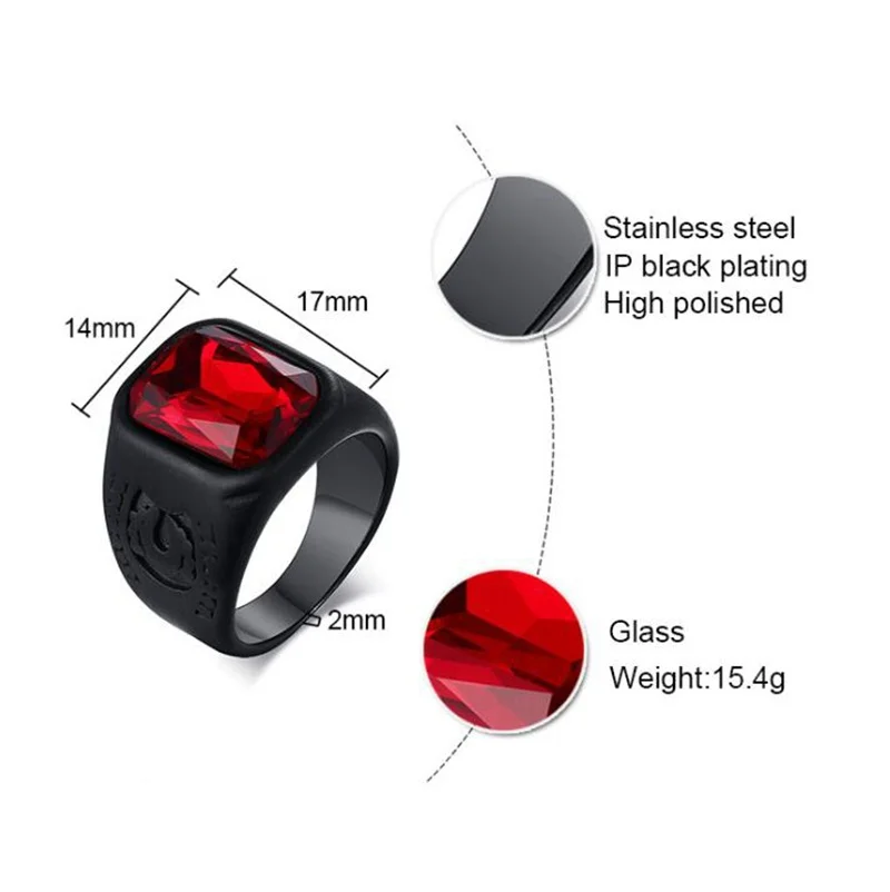 Кольцо мужское металлическое с красным кристаллом, вечернее Ювелирное Украшение в стиле хип-хоп, цвет черный