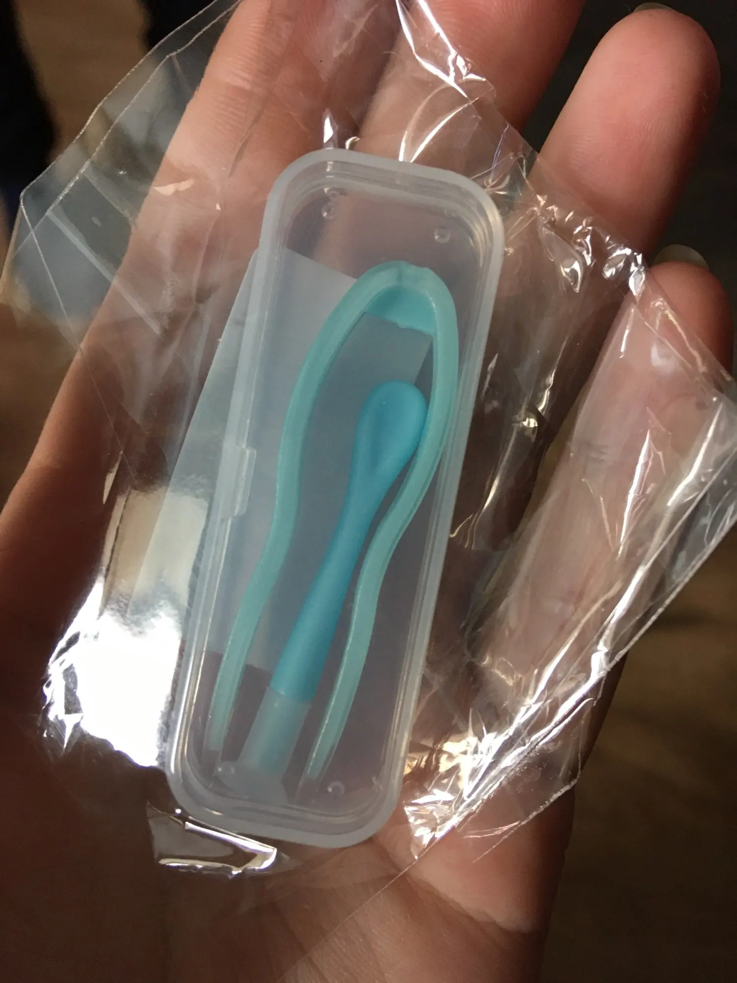 Ну прям очень долгая доставка, более 2 месяцев.. все как на картинке, запаха нет, пинцет полностью покрыт силиконом.