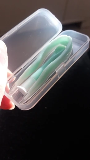 Штука для надевания линз не очень удобная, силиконовая верхушка не прямая, а с углублением. В целом по качеству нареканий нет. Товар пришел за 1.5 месяца