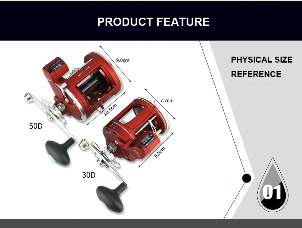 Высокая прочность Алюминий катушки леска счетчик Троллинговые Рыбол...