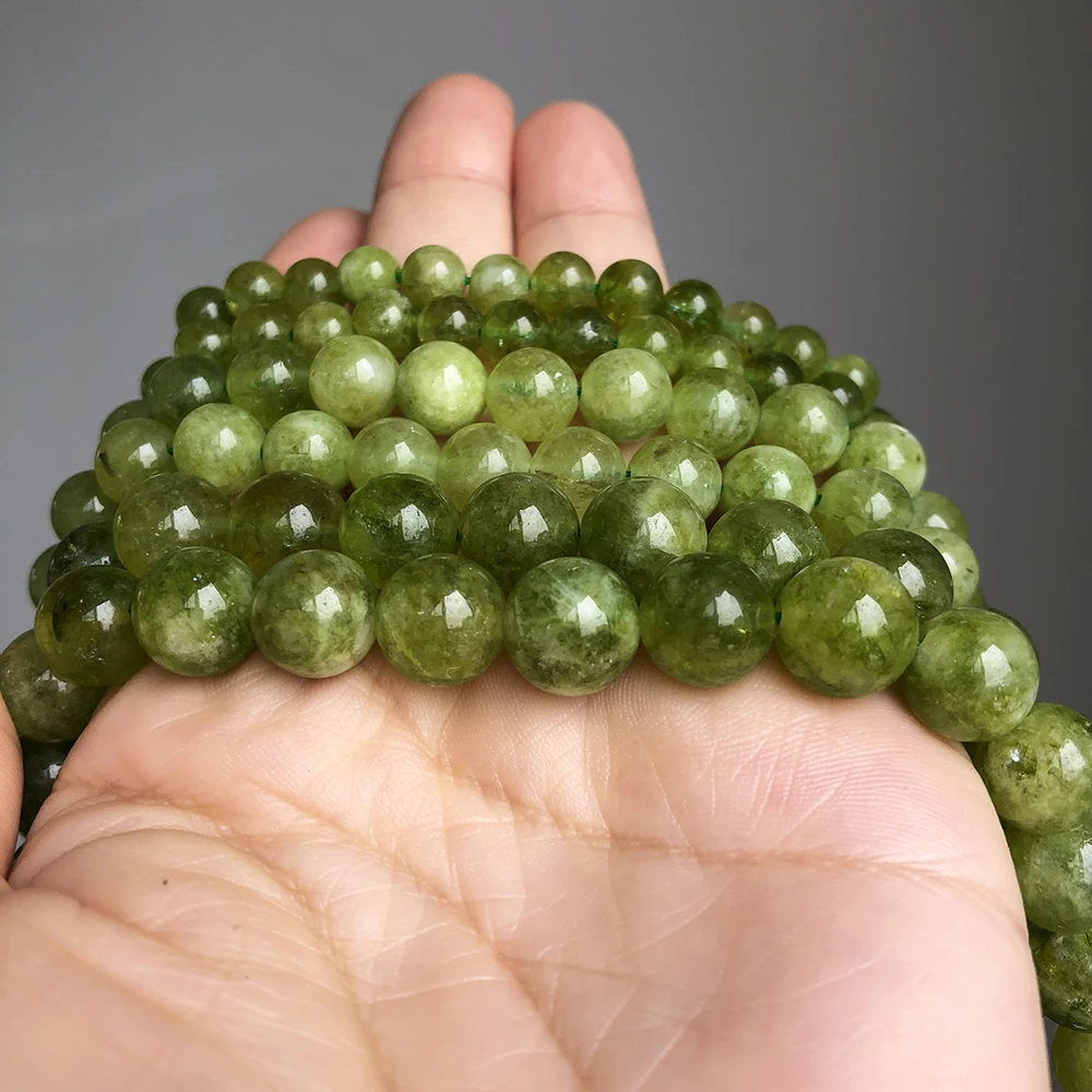 Наименование товара:6, 8, 10 мм, Зеленые Бусины из камня с Перидотом, гладкие круглые бусины-разделители для изготовления ювелирных изделий «сделай сам», браслетов, сережек, аксессуаров 15 дюймов