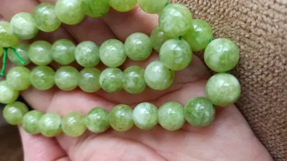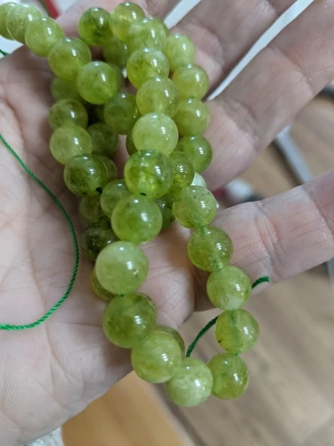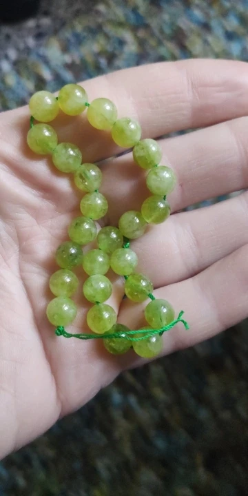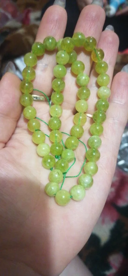 Даже вот и не знаю что сказать. Ожидала более яркий зелёный насыщенный цвет каменных бусин , обещали вроде как перидот......но что-то камни очень похожи на нефрит, у которого , заметьте цена другая. На фотографиях, заявленных к продаже, бусины совсем другого цвета и камень другой структуры. Я свои тоже сфотографировала, та нить с бусинами перидота меньшего диаметра куплена в другом месте... грустно, обманутые надежды. С другой стороны , менеджер, видит что продаёт, предупреждать надо. Клиенту можно написать, выслать фото другого товара(того ,что вы мне прислали), заменить на что-то другое. А вы как делаете? Типа и так сойдёт? Людей надо уважать. Это типа - пожелание.