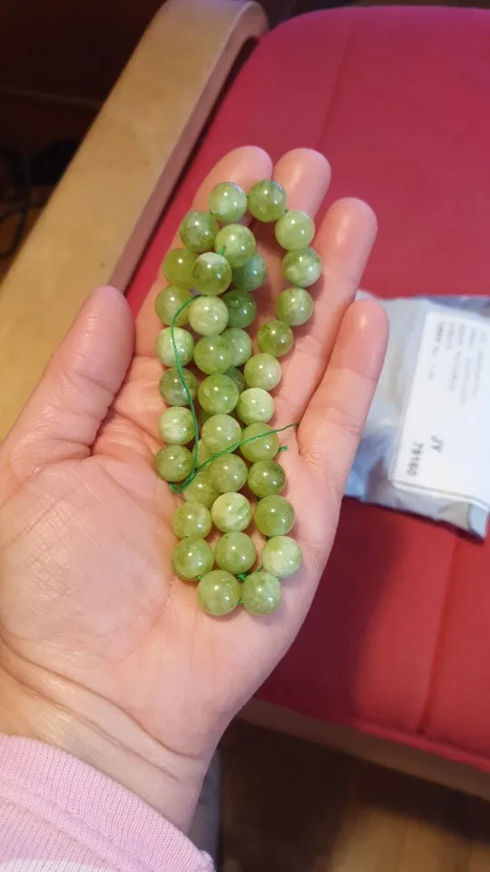 Достаточно быстрая доставка. Надеюсь, что бусины настоящие, холодные, тяжёлые.