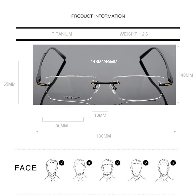 Титановый рецепт оправы для очков мужские очки без оправы по рецепт...