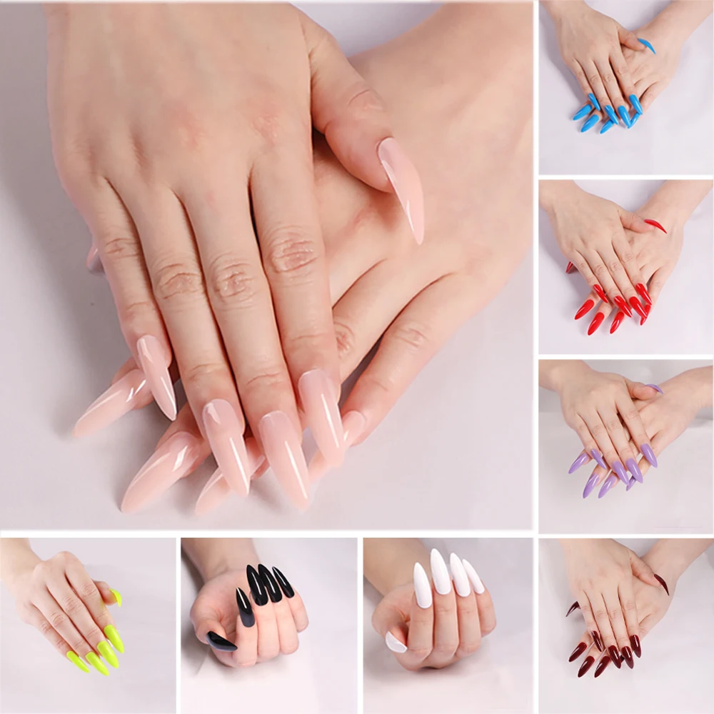 Накладные ногти, черные, удлиненные, с острым концом, 24 шт.