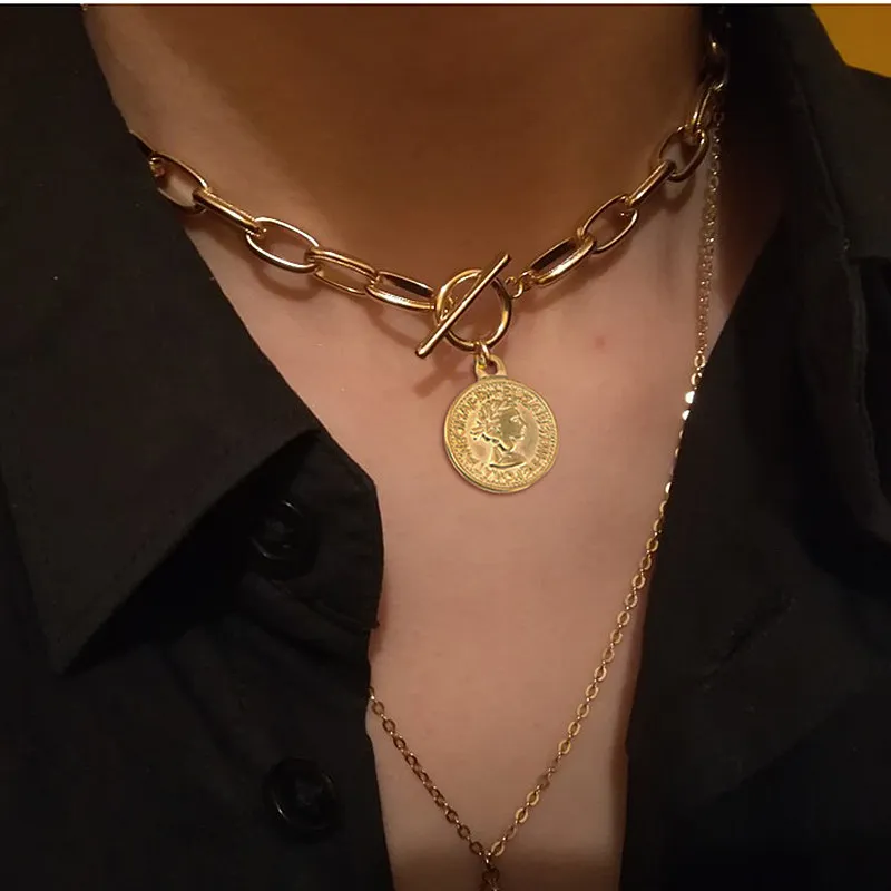 Женское колье с резным золотым монета с портретом FNIO, колье-чокер...