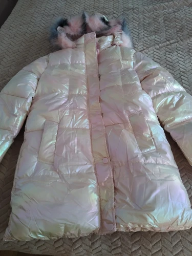 Куртка для девочек, зимняя блестящая, с капюшоном, теплая, хлопкова...