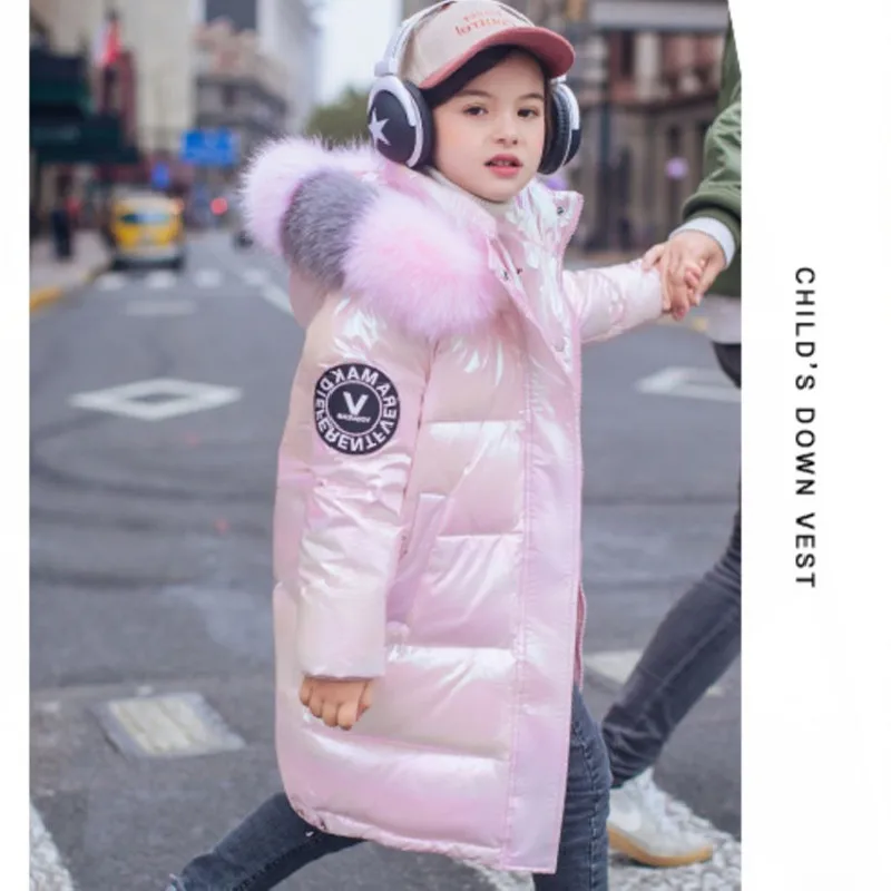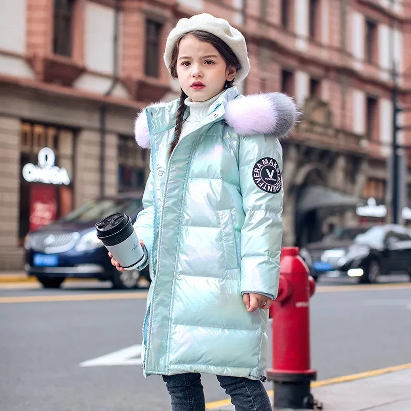 Пуховик для девочек, блестящий, водонепроницаемый, теплый, для русской зимы, 2021, парка для девочек-подростков, зимний комбинезон, пальто для мальчиков, От 5 до 14 лет