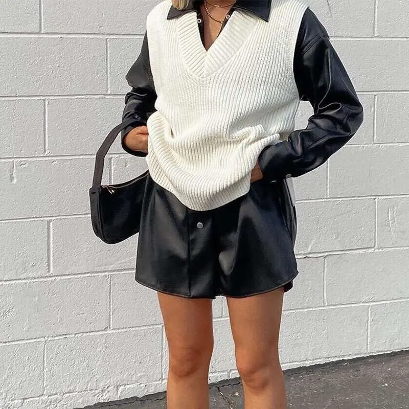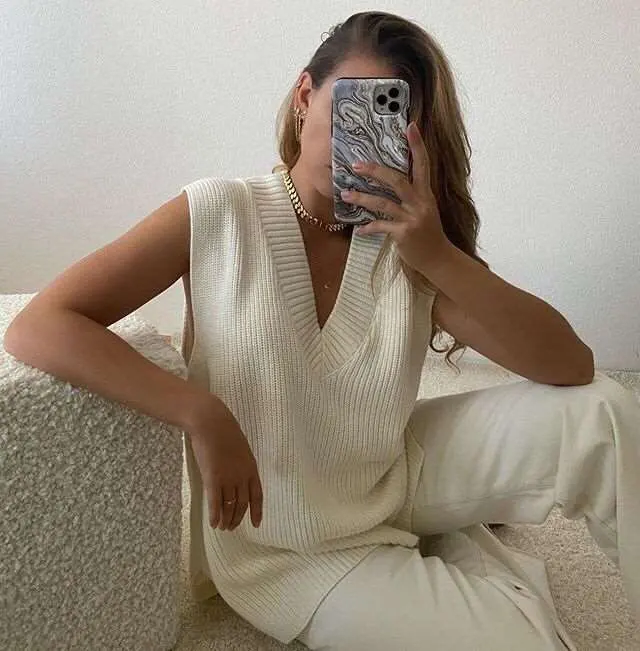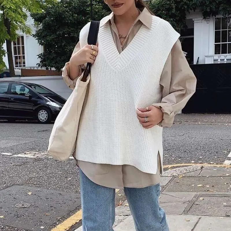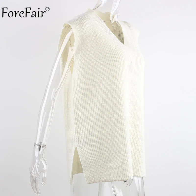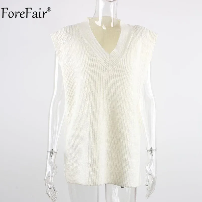 Женский вязаный жилет Forefair, Однотонный свитер с V-образным вырезом, Осень-зима