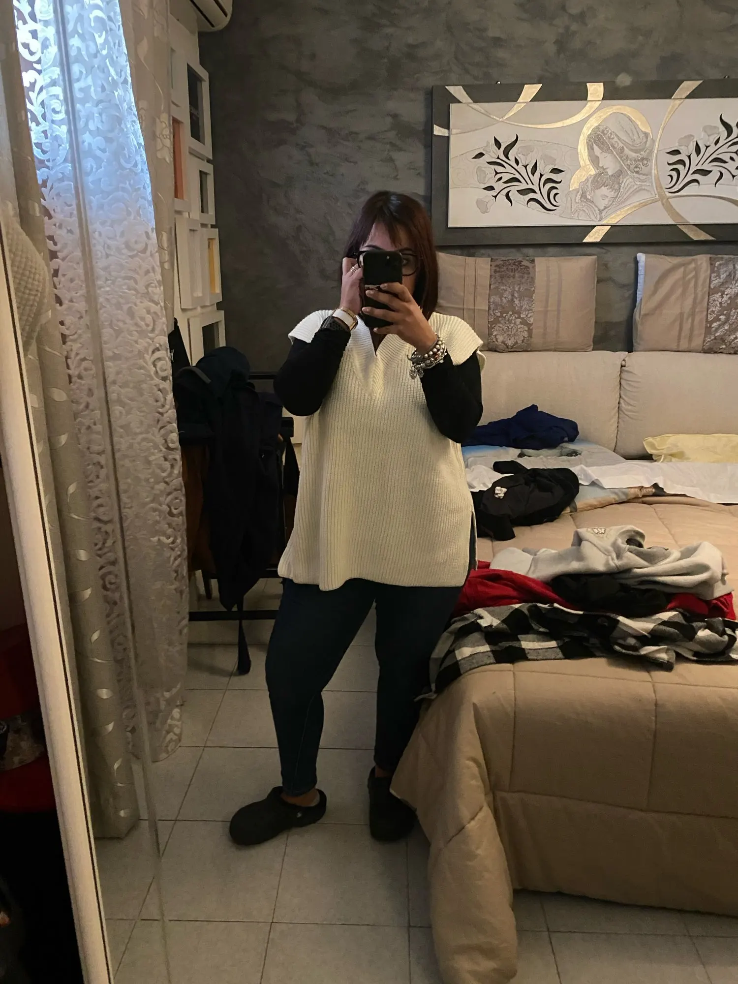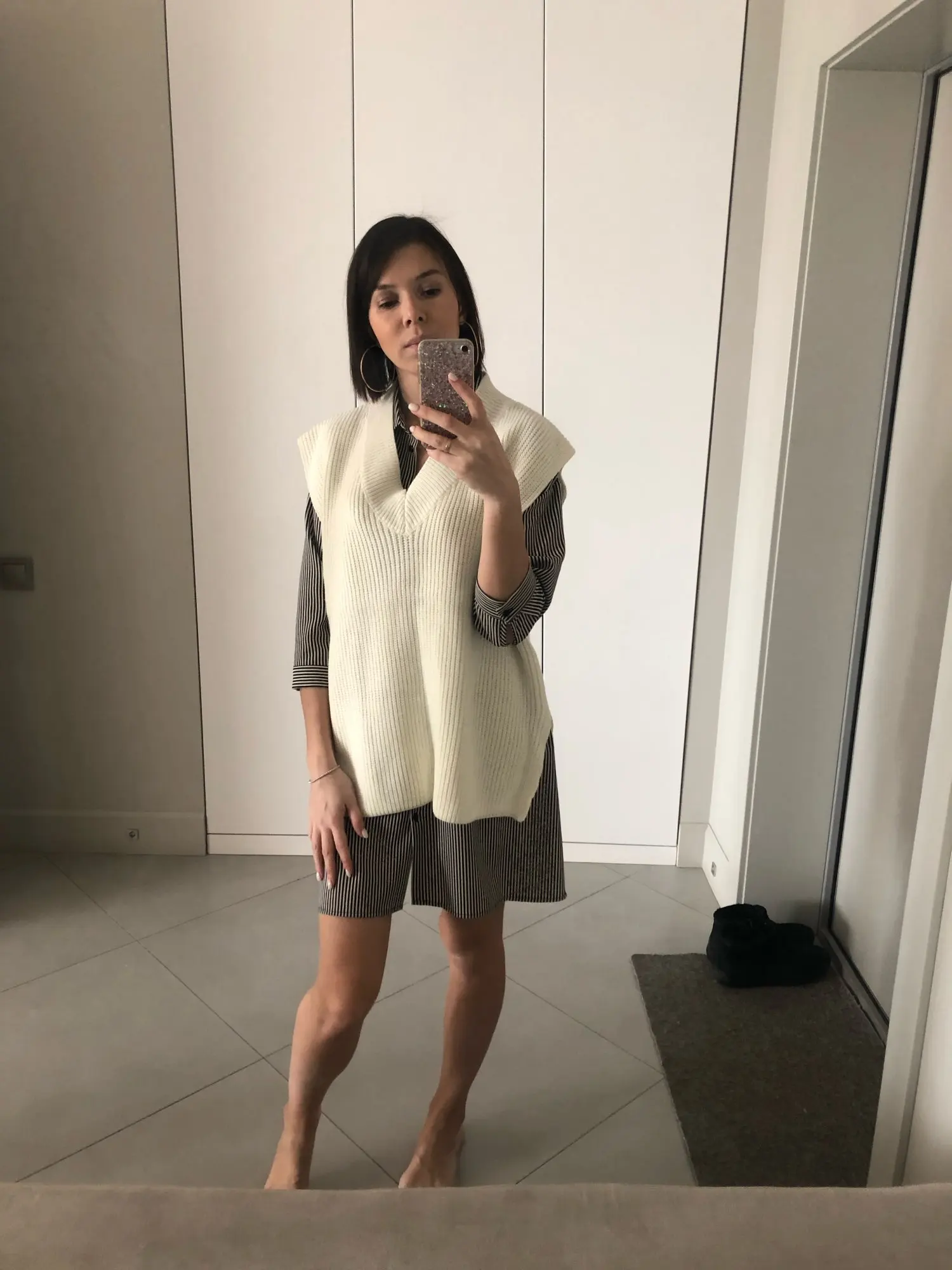 Жилет не плохой, смотрится красиво. Ношу российский М, взяла L смотрится оверсайз.