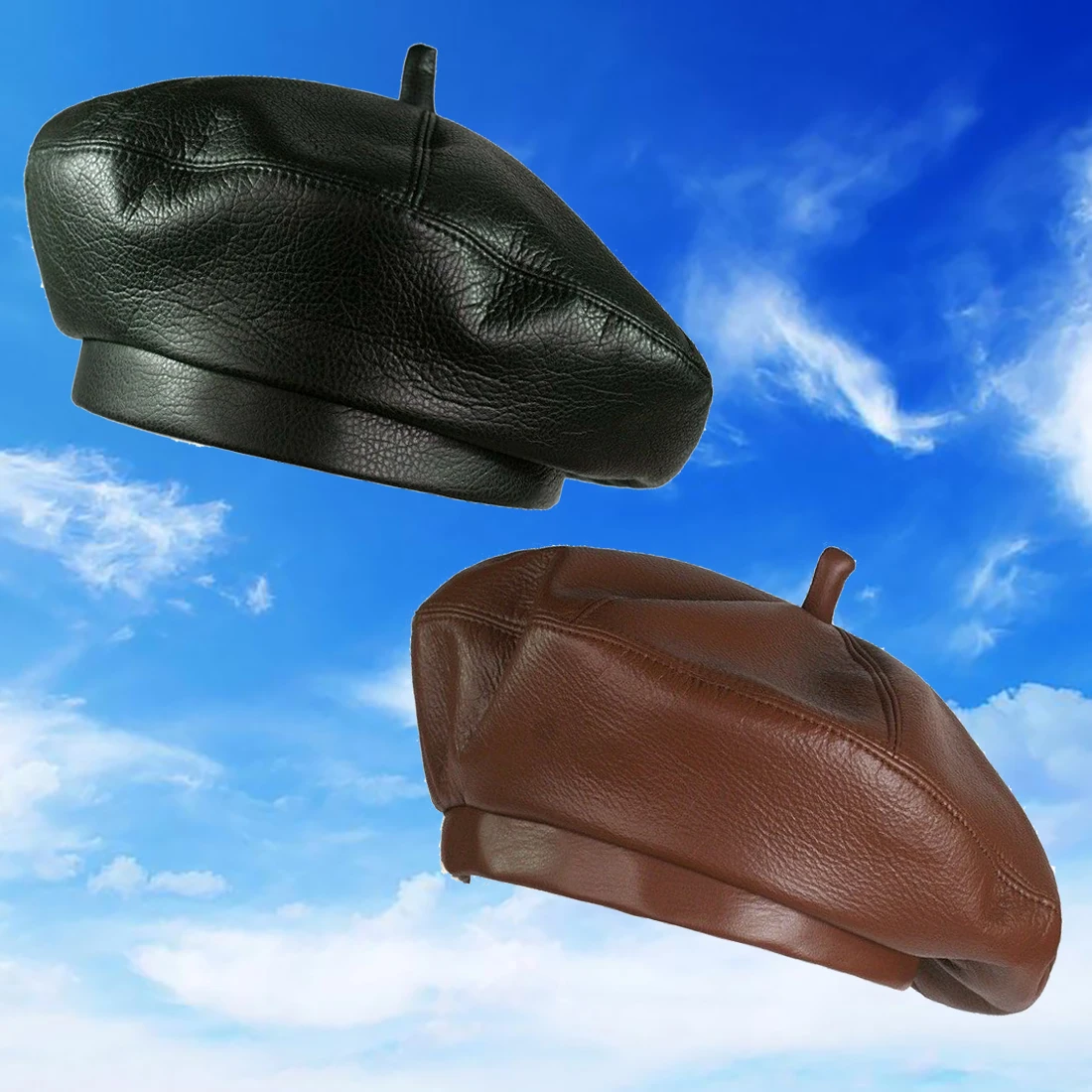 Берет женский однотонный из искусственной кожи, теплая зимняя Лыжна...