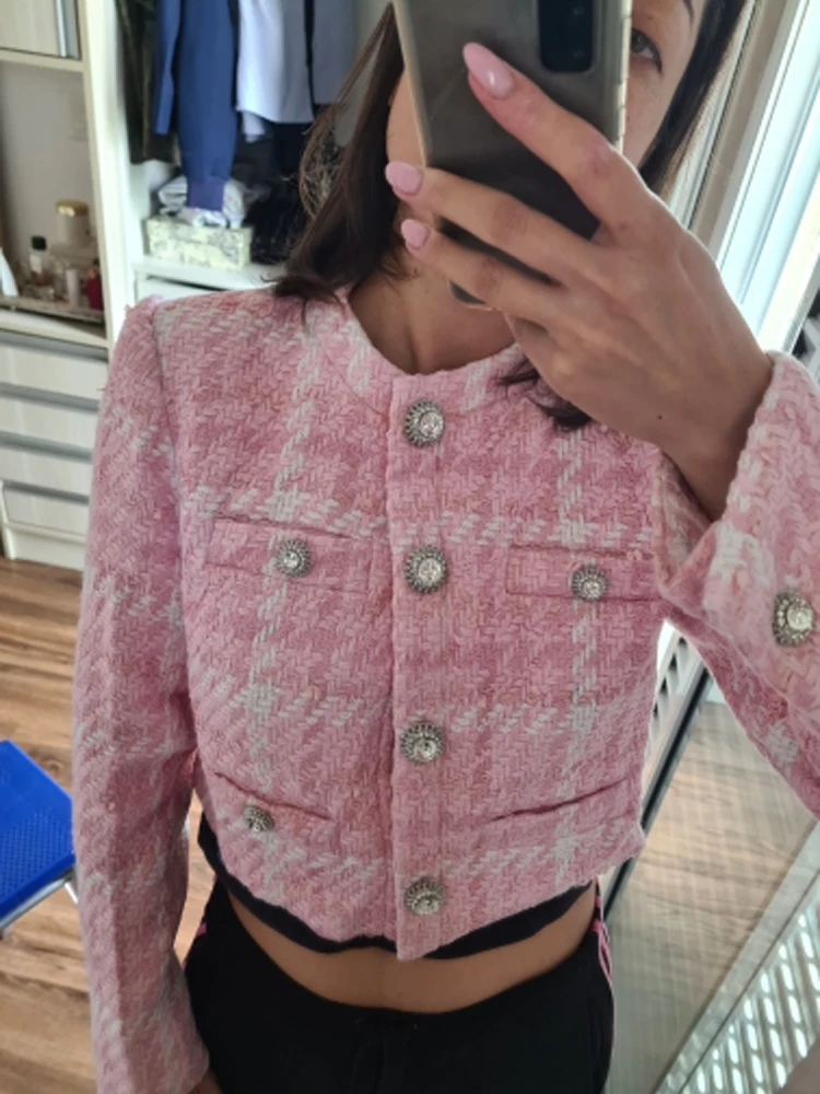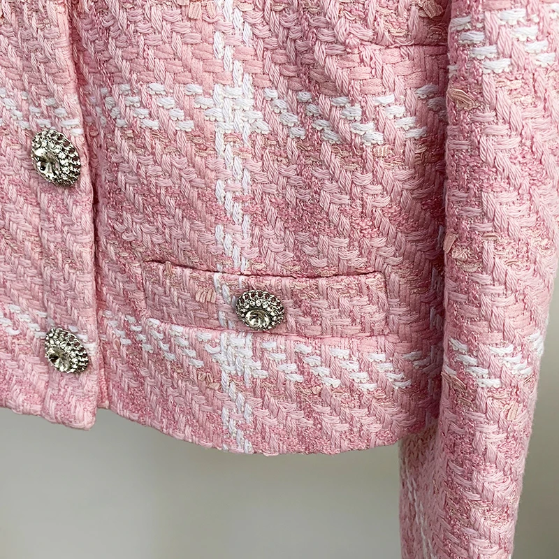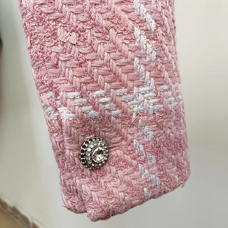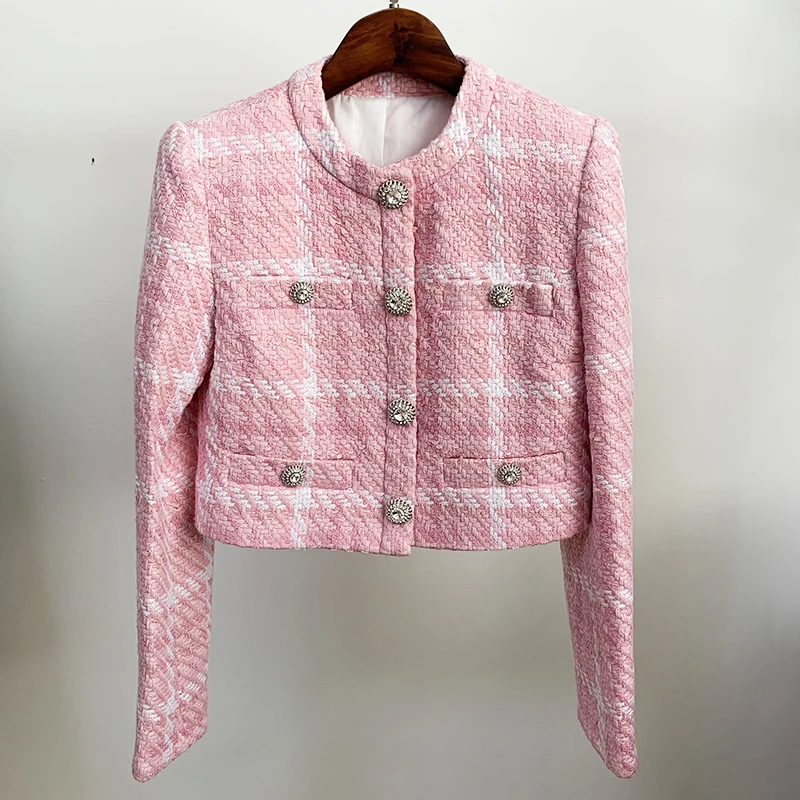Женское твидовое короткое пальто, дизайнерское твидовое пальто в клетку, с пуговицами и стразами, смешанные цвета, 2022