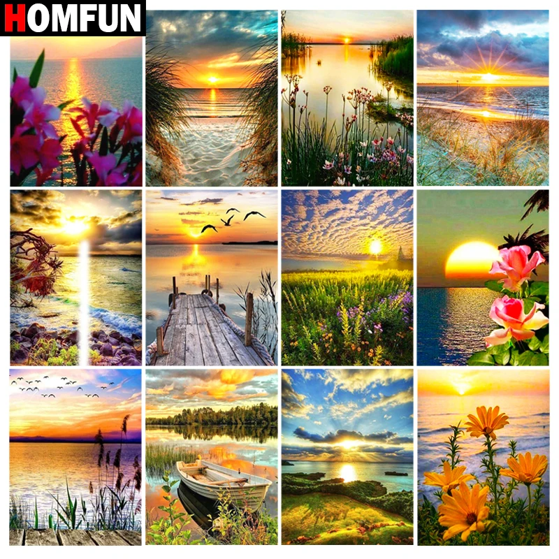 Алмазная 5d картина HOMFUN, картина озеро, цветок, пейзаж, полная вышивка, домашний декор, для творчества