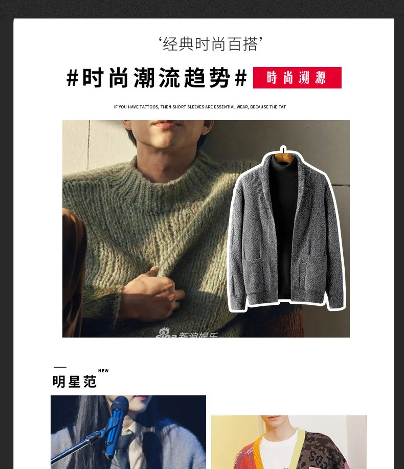 Винтажный пуловер, свитер для мужчин, утолщенный Теплый черный улич...