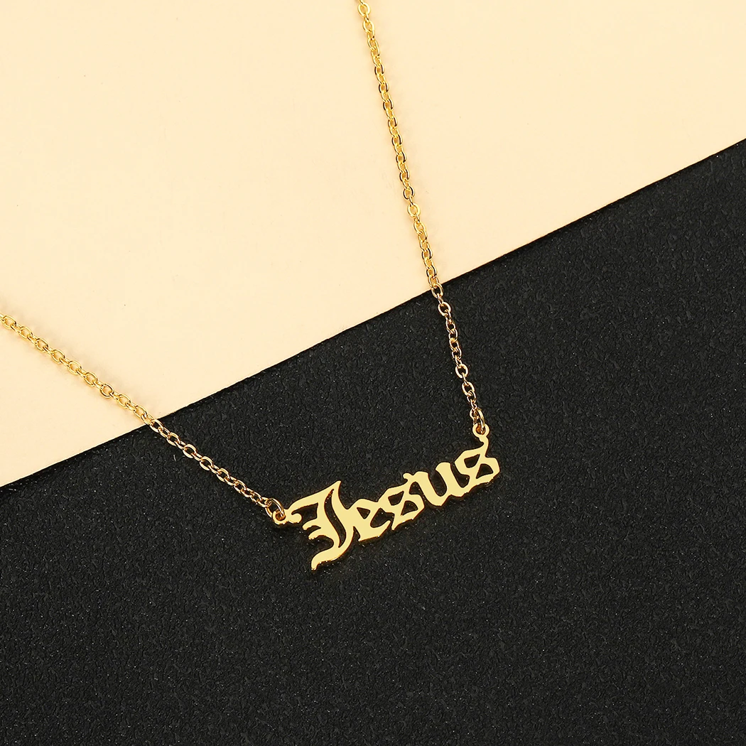 Ожерелье QIMING с надписью Иисуса Христа для женщин и мужчин, ювелирное изделие, золотой крест, модные кулоны, колье, Прямая поставка