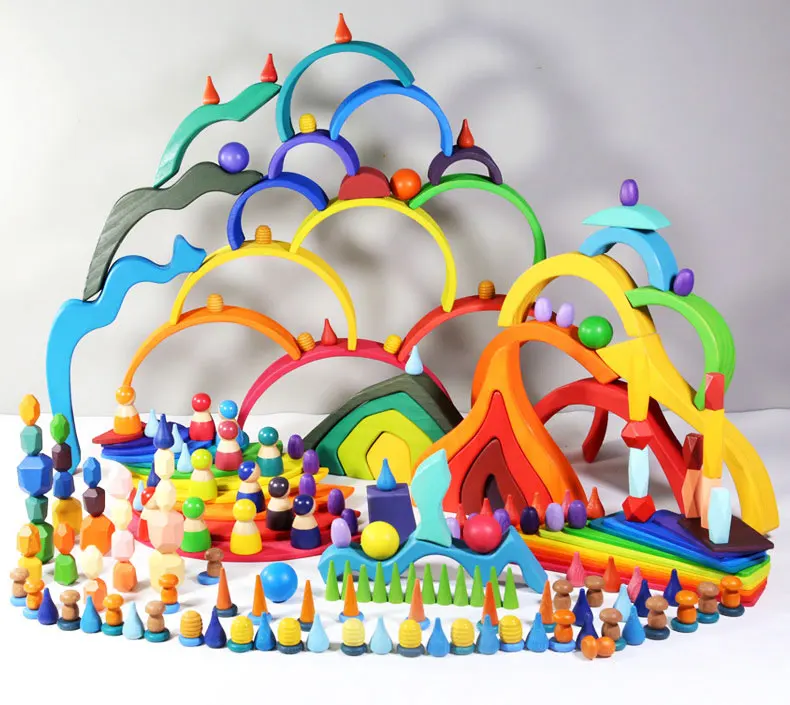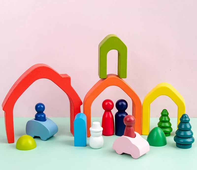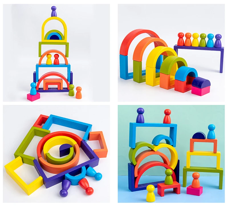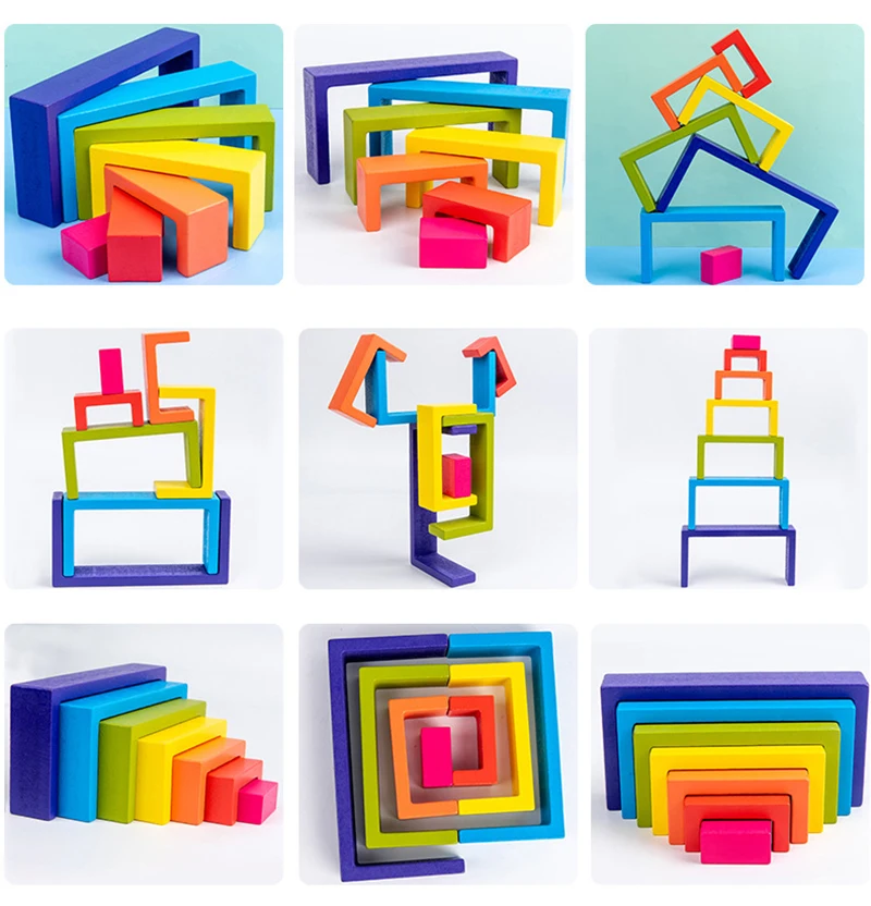 Игрушки Монтессори строительные радужные Деревянные игрушки Монтессори Обучающие деревянные игрушки для укладки обучающие игрушки для детей Детские игрушки