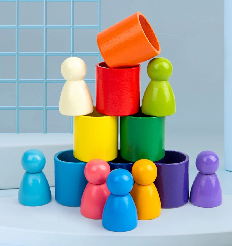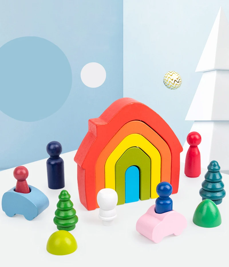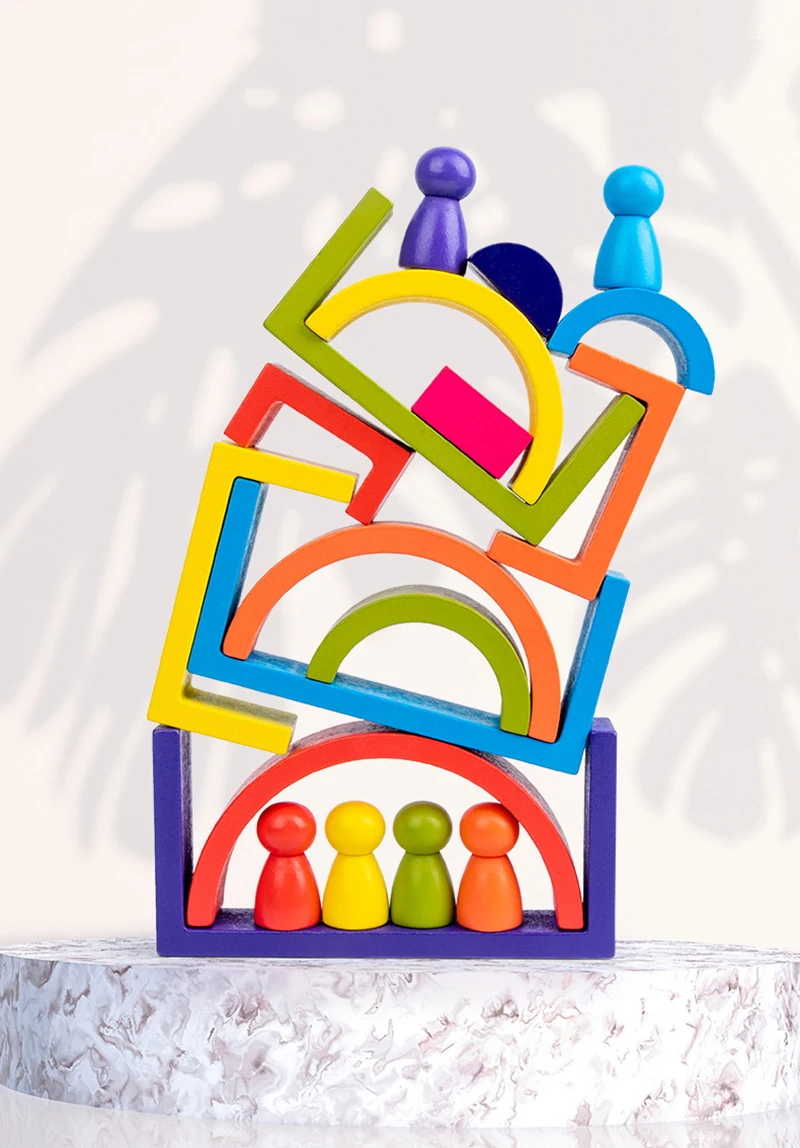 Монтессори игрушки строительные радужные Деревянные игрушки Монтессори Развивающие деревянные игрушки укладка Развивающие игрушки для детей Детские игрушки