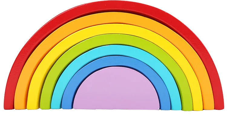 Радужные деревянные игрушки, полукруги, строительные блоки, прямоуг...