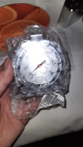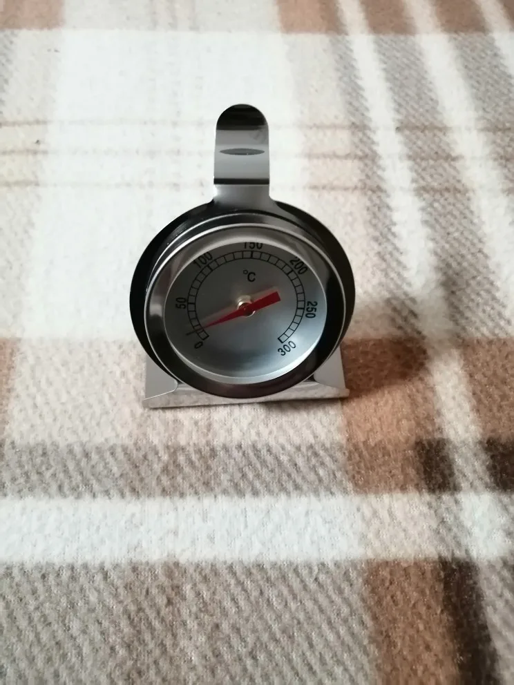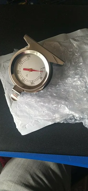 Градусник брал для духовки, штатный потеряли. Температуру показывает точно, устанавливаю на бортик протвеня или на решетку. Корпус довольно таки тонкий, как из жести, но он и нагрузок (механических) не испытавает. Деления идут через 10°С, но большая точность не нужна. Рекомендую к покупке. Продавцу спасибо!!!