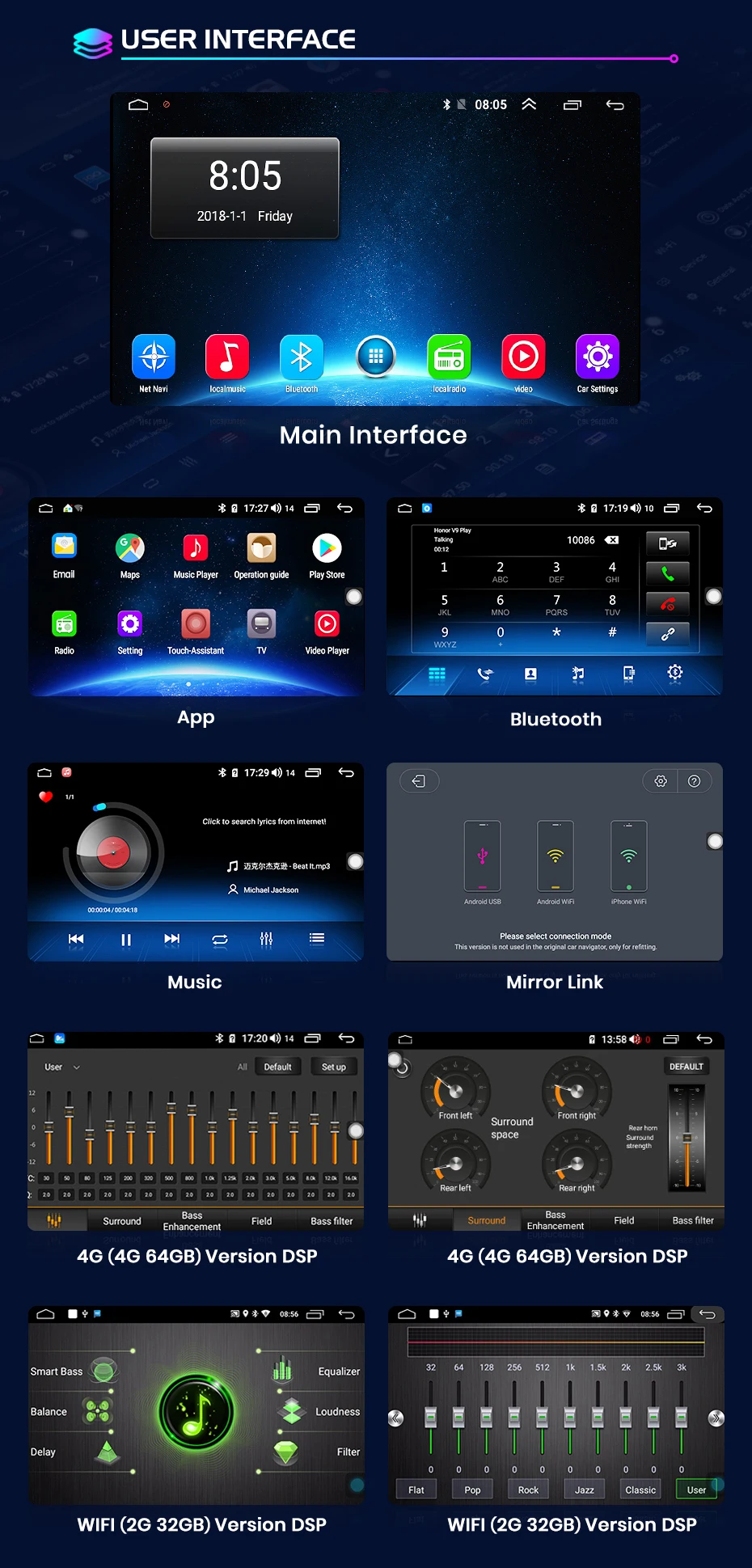 Special FeatureBuilt-In Microphone,4G Network,Wifi Function ,Steering Wheel Control