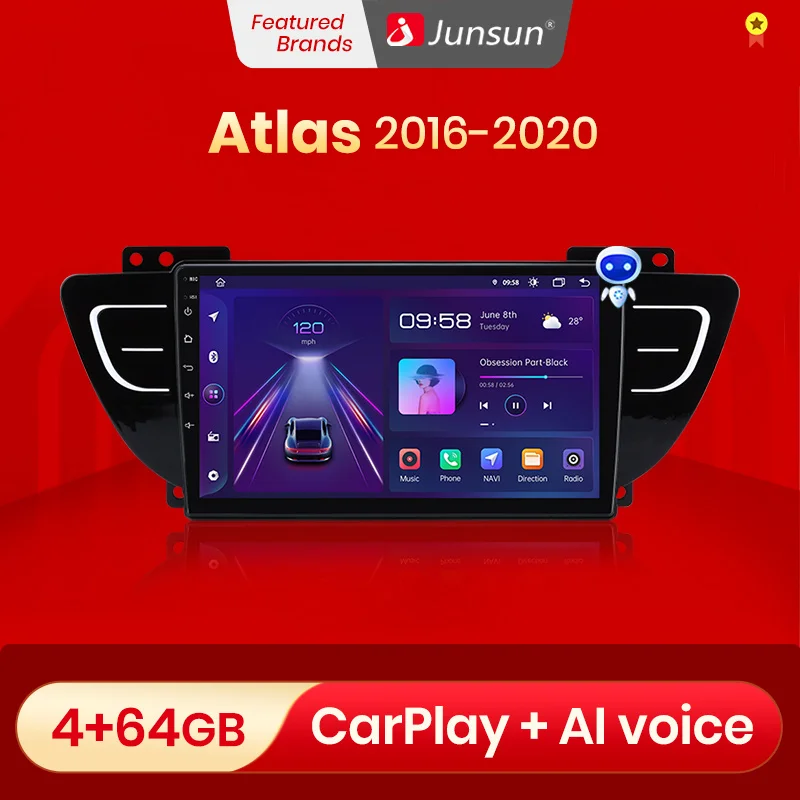 > Junsun V1 для Geely Atlas NL-3 2016 - 20209-дюймовый емкостный экран 2.5D + четырехъядерный процессор 1,2 ГГц + DDR3 1 Гб (2 Гб опционально) флэш-память + 16 Гб (32 Гб опционально) + Встроенный Wi-Fi (опционально сеть 4 Гб) + GPS-навигация (Обновление карты, только поддержка бренда Junsun) + Управление рулевым колесом + зеркальное отображение + Bluetooth + Встроенный микрофон + FM / AM + RDS (опционально) + Поддержка функции USB ADAS DVR + Функция Europe DAB + 1080P Vedio Play + HD 1024*600 + шины системы контроля давления> Язык OSDРусский, английский, испанский, итальянский, французский, немецкий, китайский, эстонский, польский, филиппинский, финский, корейский, голландский, хорватский, латышский, литовский, румынский, норвежский, португальский, японский, шведский, тайский, турецкий, украинский, венгерский.> 24 ч * 7 сервисная поддержкаВ Junsun Наша цель-продолжать усердно работать над созданием инновационного автомобильного мультимедийного радиоаппаратного и программного обеспечения, которое дает вам персональный контакт.Мы предоставляем бесплатные обновления для прошивки, программного обеспечения, карт GPS-навигации.