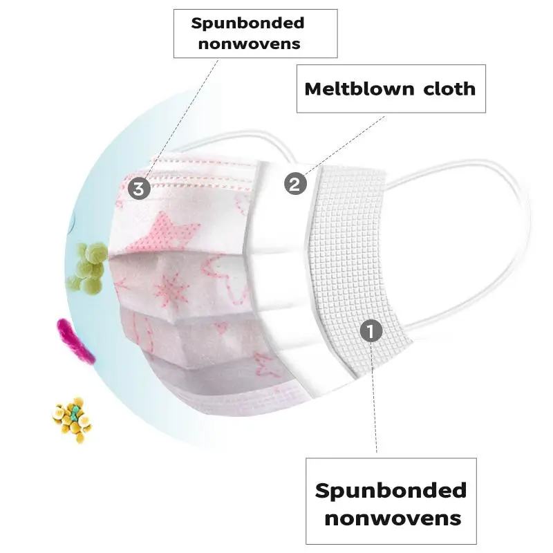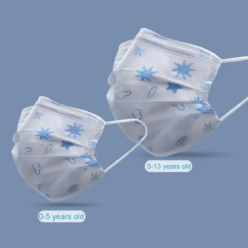 1050100 шт. детей одноразовая маска для лица из нетканого материала 3 Слои фильтр Индивидуальная упаковка; Детские комплекты с принтом из маленьких маски со ртом для лица