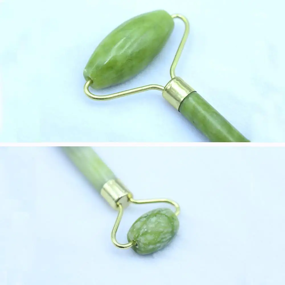 Спа-ролик для массажа лица с двойными насадками, Нефритовый камень,...