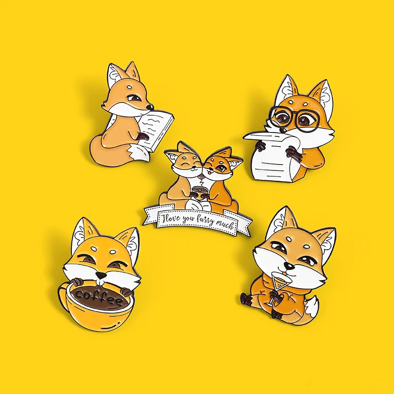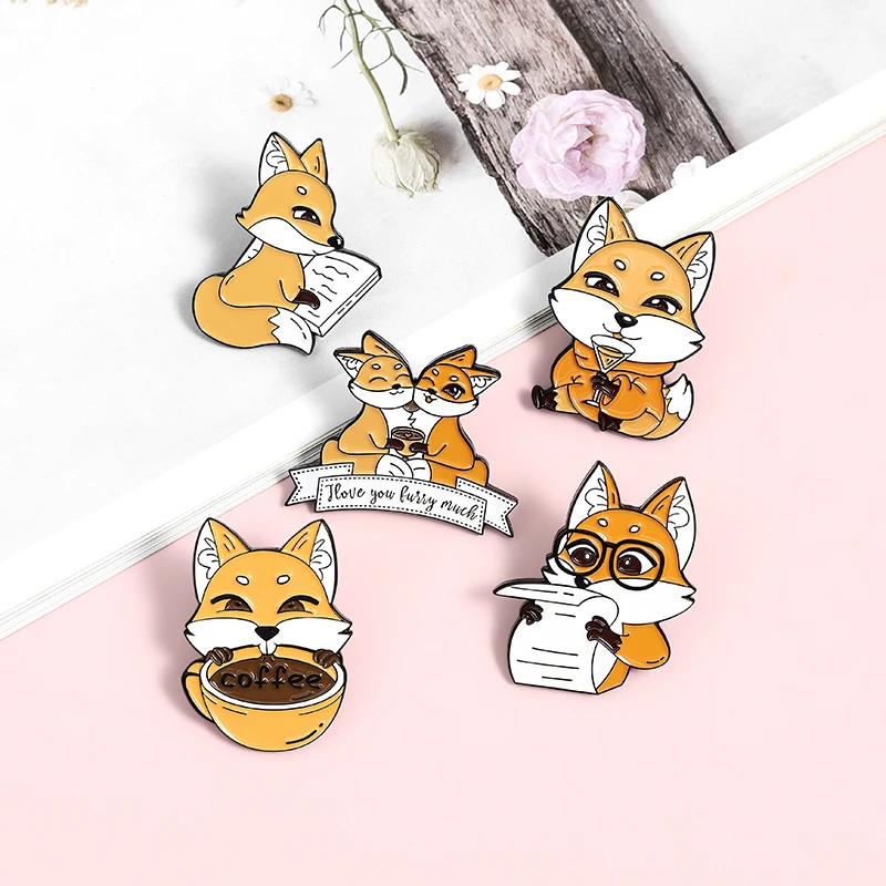 Милые эмалированные заколки для лацканов доктор лиса, как для чтения и кофе, броши, значки, модные Мультяшные заколки, подарки для друзей, ювелирные изделия, оптовая продажа