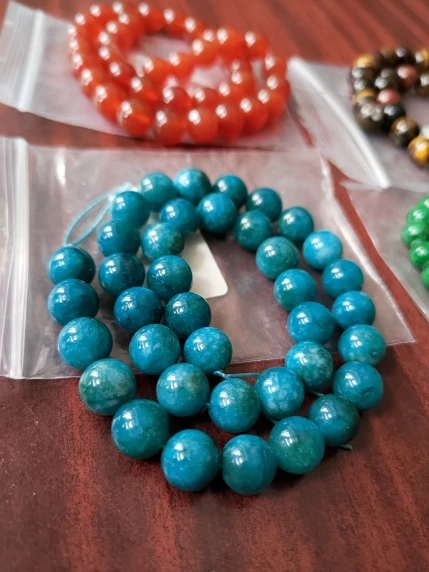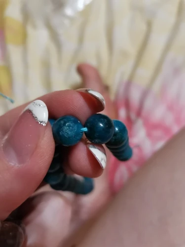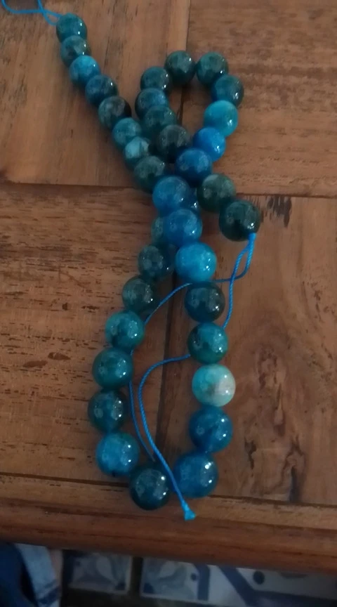 качество хорошее, ровные непрозрачные без сколов бусины. цвет соответствует апатитам, но нет радиально-лучистых изломов, нет характерного проявление люминесценциии, что ставит под сомнение в подлинности указанного камня.