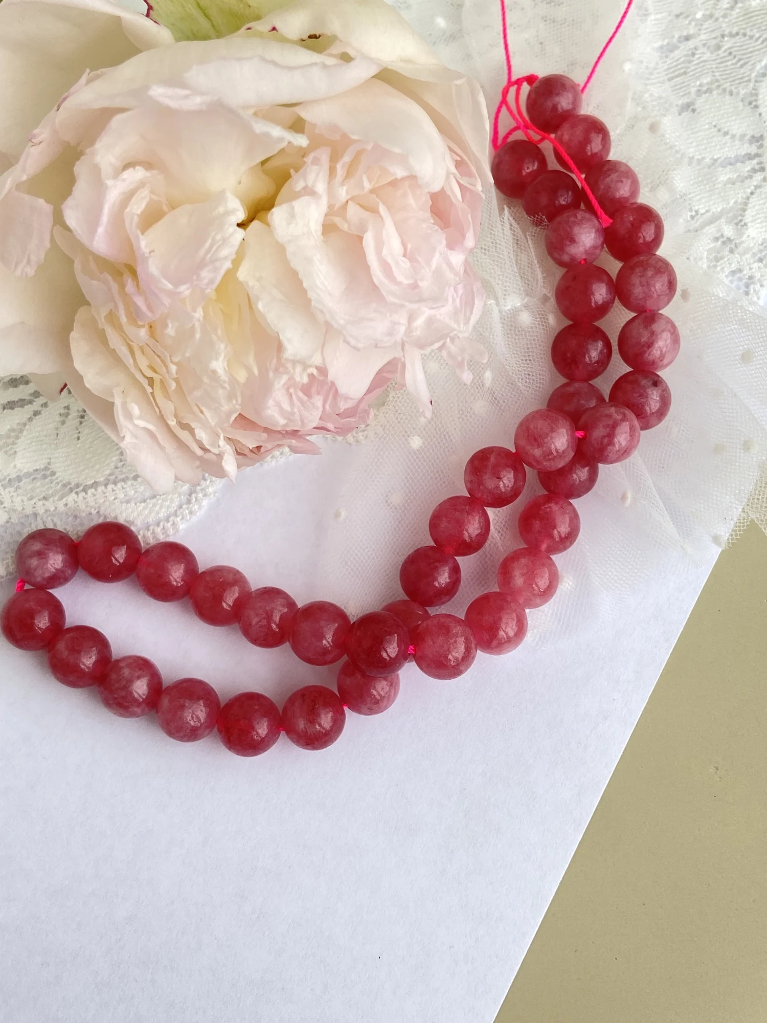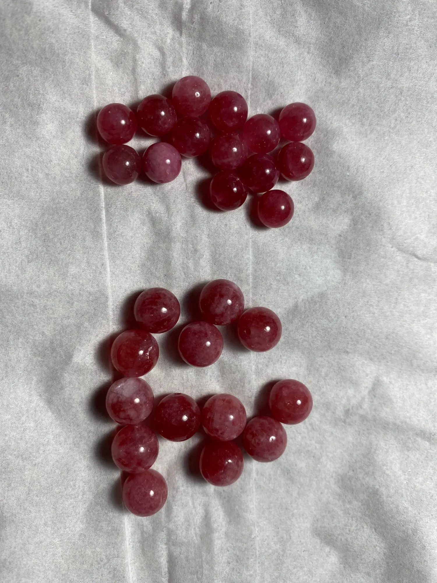 очень красивый клубничный кварц. судя по всему, натуральный. бусины тяжелые. холодят. выдержали множество испытаний, в том числе на разрушение. от партии была отобрана одна бусина и расколота молотком. кварц материал твердый, но хрупкий. особых усилий это не доставило. излом получился неровный, как и должно. к упаковке и доставке нареканий нет. спасибо продавцу.