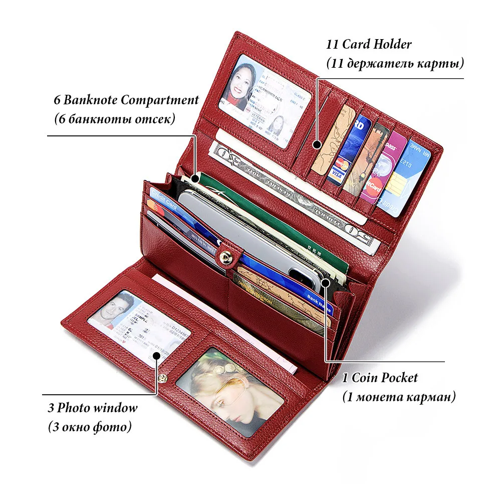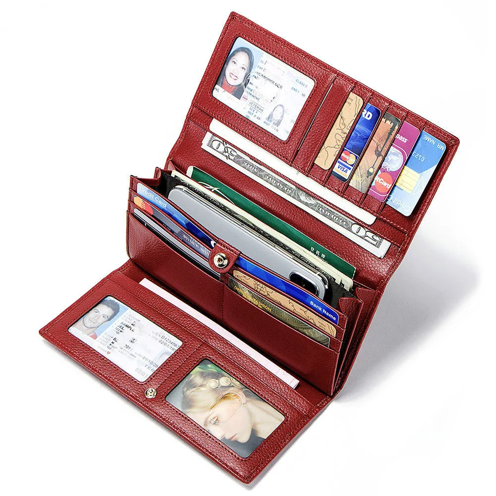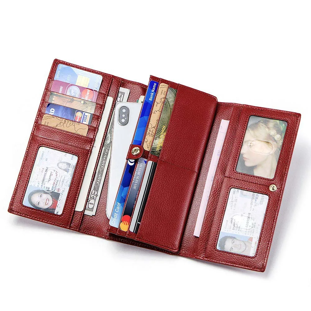 RFID кошелек для женщин, высокое качество, кожаный кошелек, многофункциональный женский кошелек, длинный большой объем, держатель для карт, кошелек, сумка для телефона, сумка для денег