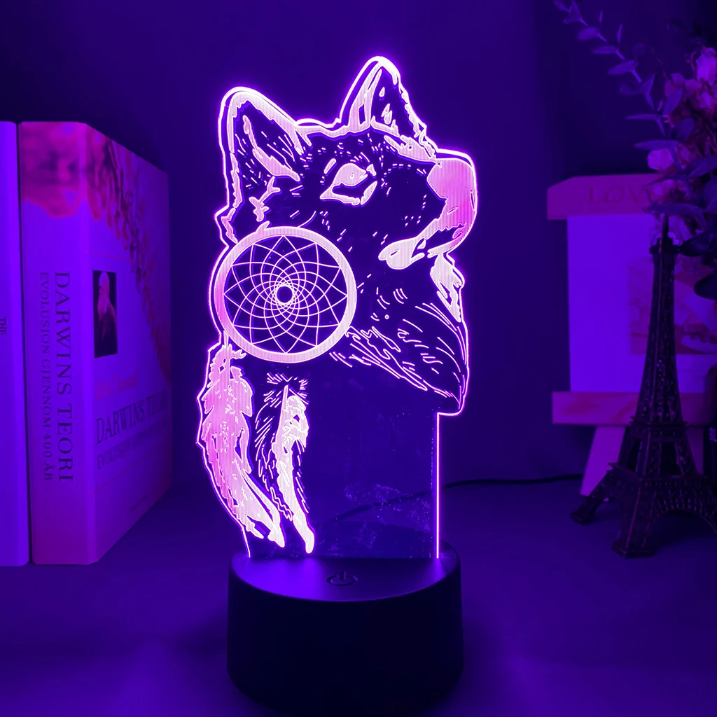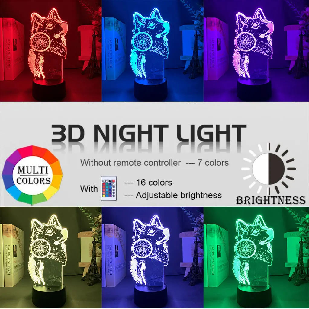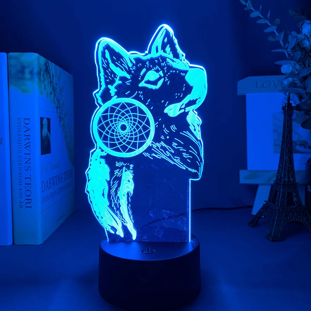Ночсветильник с 3d-иллюзией волк и Ловец снов для украшения дома, ночсветильник с цветным сенсорным датчиком, светодиодная настольная лампа для спальни, подарок