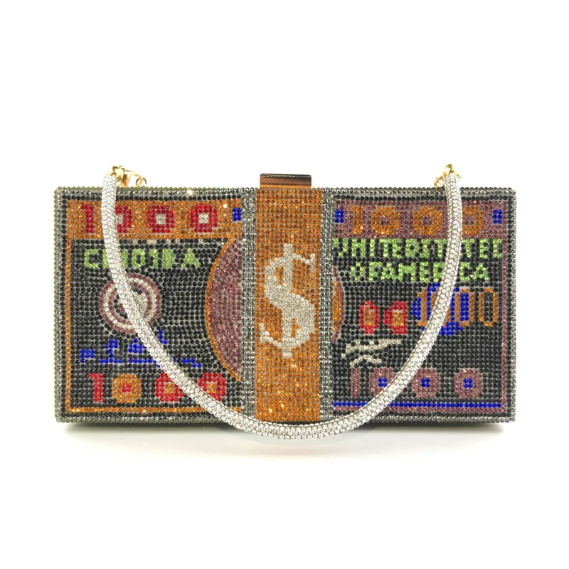 Кошелек-клатч для денег, стразы, 10000 долларов
