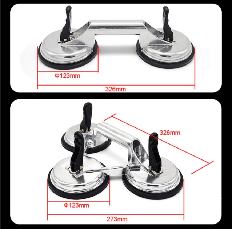Три ручки присоски на стекло 【Принцип работы 】стеклянная присоска с тремя ручками в основном является ручным инструментом, используемым для поглощения плоских и гладких предметов, таких как стекло, плитка и полы. Используйте прочность и деформацию резинового шасси для создания вакуума и используйте атмосферное давление, чтобы прочно сосать предметы, чтобы достичь цели подъема и транспортировки предметов. Параметры: Горизонтальное всасывание: 160 кг Вертикальное всасывание: 140 кг Диаметр резиновой прокладки: 123 мм Длина длинной стороны: 328 мм Длина короткой стороны: 270 мм Диаметр ручки: 32 мм