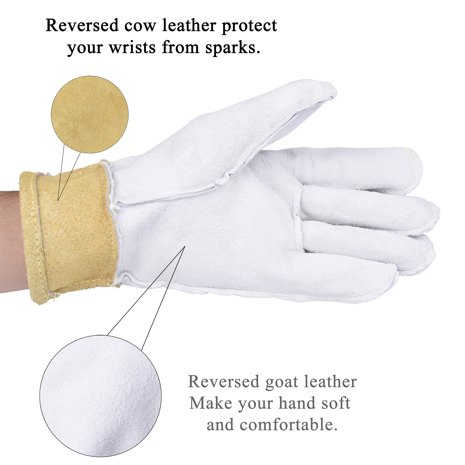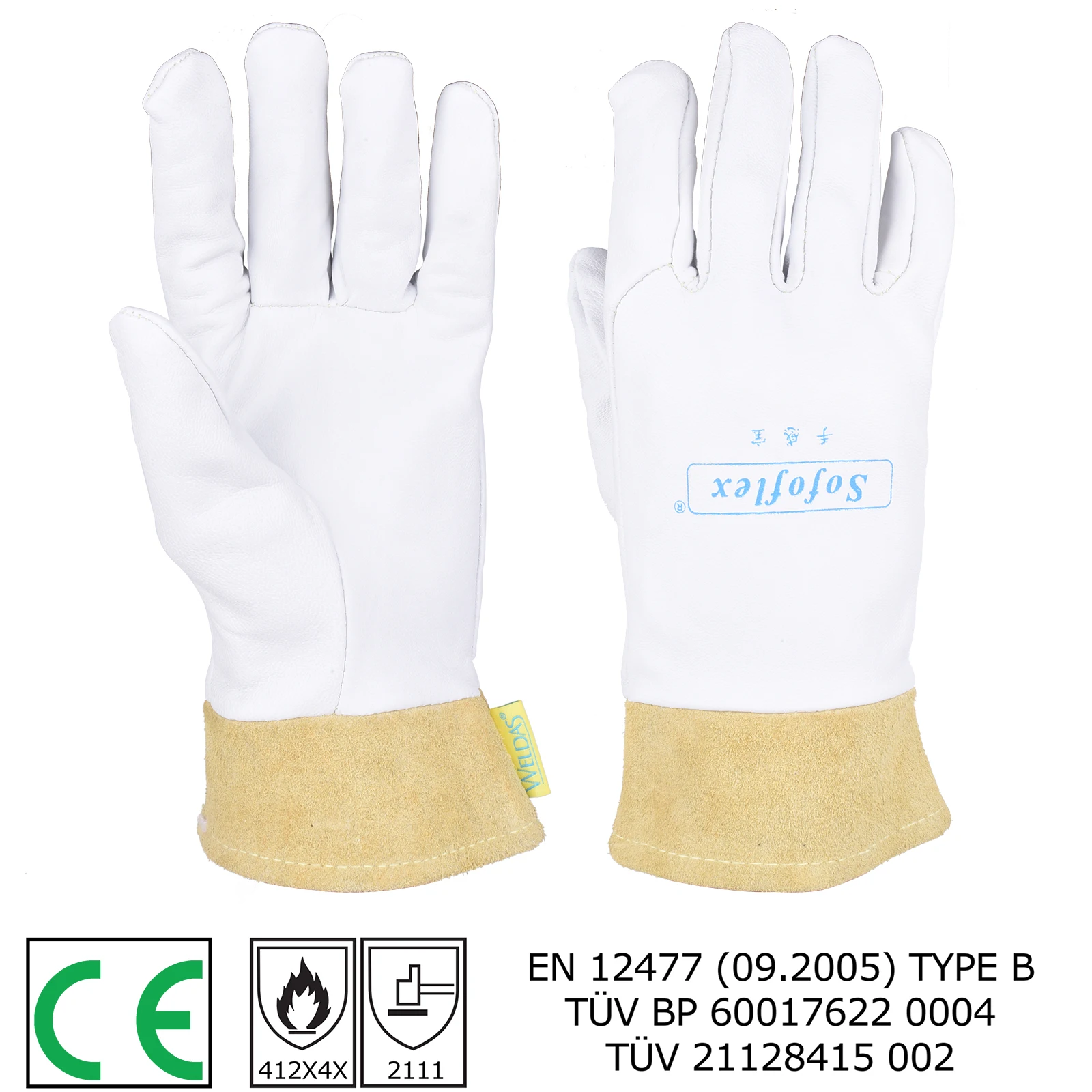 Пара перчаток для сварки TIG 25 см (9,84 дюйма), ладонь из козлиной шкуры, манжеты из воловьей кожи, мягкие чувствительные перчатки, сертификация CE, WELDAS, высокое качество